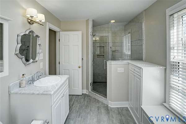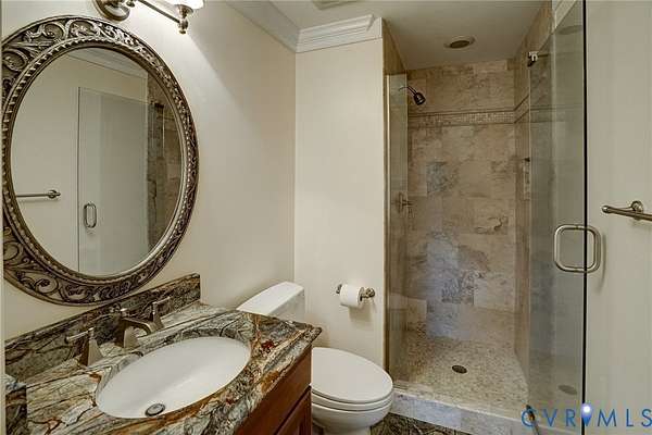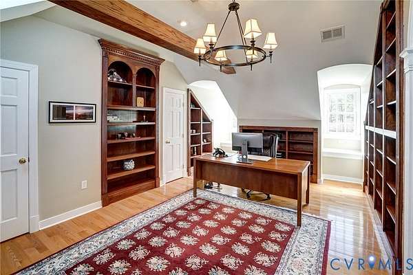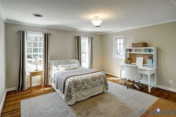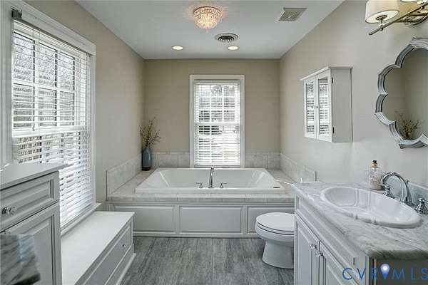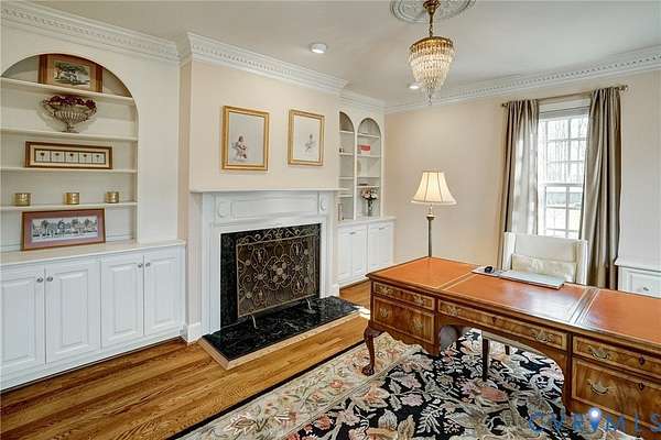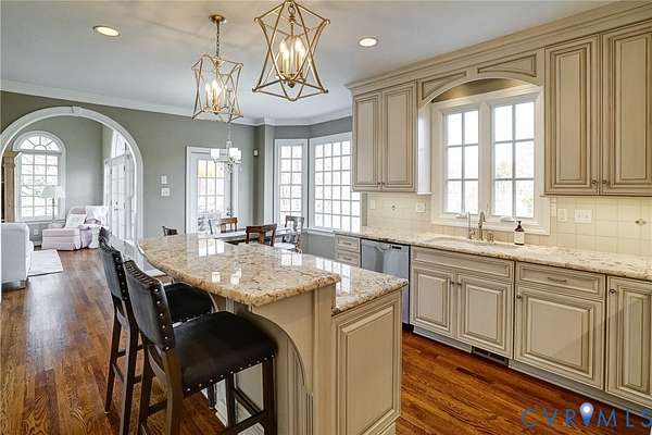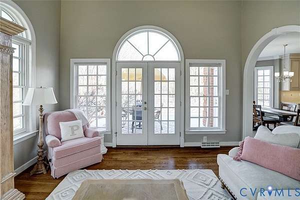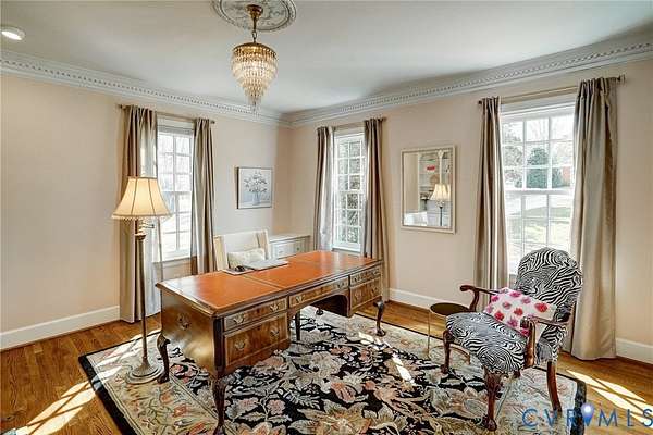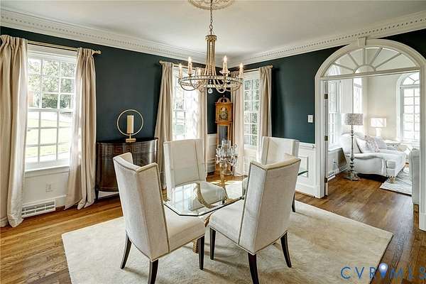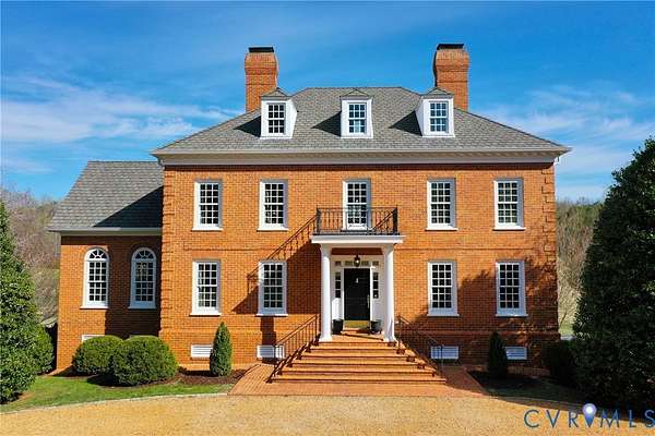 Resort-style living on the golf course at Hermitage Country Club awaits at Sabot Run. This beautifully renovated all-brick Colonial Revival offers timeless elegance and modern comfort, set on 3.41 private acres overlooking Hole #16 of the Sabot Course with sweeping meadow and golf course views. Striking architectural details including symmetrical chimneys, hardwood floors on three levels, high ceilings, arched doorways, and floor-to-ceiling architectural windows fill the home with natural light and frame picturesque views. Begin your day in the sunroom with vaulted ceiling and French doors leading to the deck. The gourmet kitchen, renovated by Custom Kitchens, features new cabinetry, Golden Queen granite countertops and island, stainless appliances and a Closet Factory pantry. A charming bay-window breakfast area with atrium doors provides direct deck access for easy indoor-outdoor living. The family room features a masonry fireplace, wet bar, and French doors leading to the wraparound deck-perfect for entertaining. The living room, dining room, and family room each include masonry fireplaces with gas connections, while the living room also offers built-in bookcases and a great space for a home office. Upstairs, the owner's suite includes a renovated bath with tub and shower. Additional bedrooms are generously sized and have convenient access to a fully renovated bathroom. The third level is a private retreat with a luxurious office suite featuring a beamed ceiling, marble half bath, walk-in closet and adjoining flex space. The finished walk-out lower level is ideal for extended family or guests, offering a flex room with closet, full bath, living area with built-in bookcases, and a bar with wine chiller and refrigerator with ice maker. The covered patio provides a peaceful secondary outdoor living area. Additional highlights include a 31' X 24' garage, generator, custom closets, Grand Manor roof, replacement windows, refinished hardwood floors, and newer HVAC creating a low-maintenance lifestyle for many years.