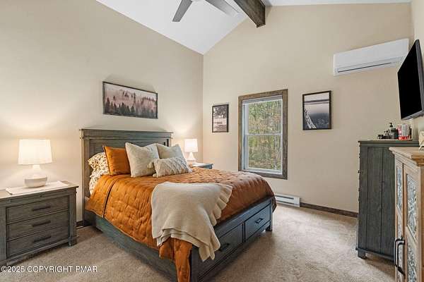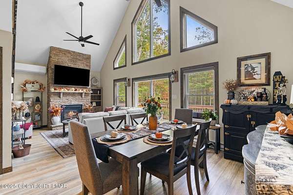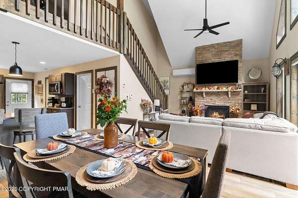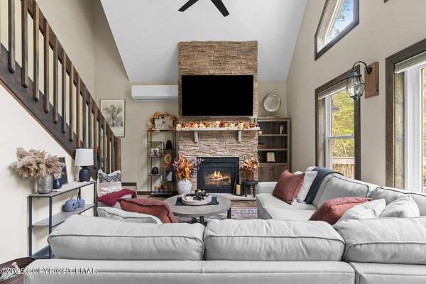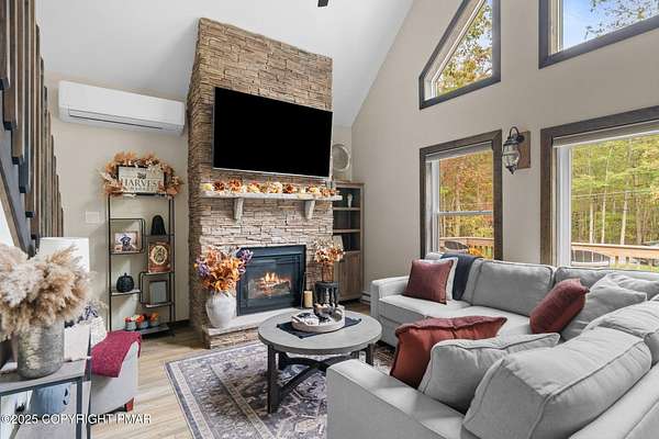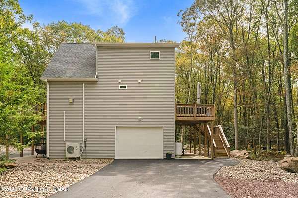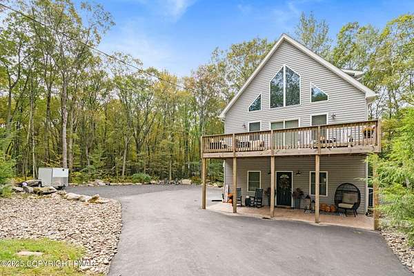 Discover this stunning 3 STORY CHALET, NEWLY built in 2021, offering the perfect blend of modern design and mountain charm. Nestled on 2 private acres, this home features 2 bedrooms and 2 full baths, with a LOFT, ideal as a full time residence, weekend getaway, or investment property. The rare DRIVE THROUGH GARAGE provides convenience and extra storage for vehicles, ATVs, or outdoor gear. With ample outdoor entertaining space and a peaceful wooded setting, this property is a true retreat. Step inside to soaring ceilings, natural light, and an open concept layout made for both comfort and style. The highlight is the expansive deck space, perfect for hosting gatherings, enjoying morning coffee, or relaxing under the stars. Don't miss your chance to own a modern chalet with all the mountain lifestyle perks ready to enjoy from day one!