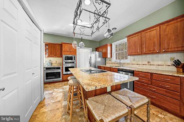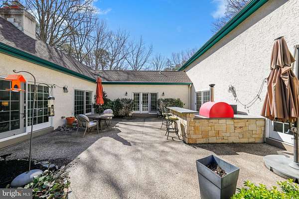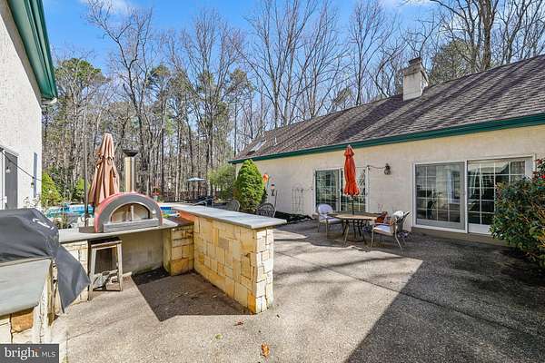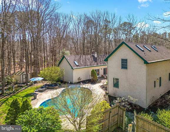Welcome to 4 Ridge Court in Medford - a private, resort paradise and entertainer's dream! Tucked away at the end of a quiet cul-de-sac, this stunning custom-built home offers the perfect blend of luxury, comfort, and nature-just in time for summer living. 4 Ridge is uniquely designed to host 2 living and sleeping areas, one for the master suite ensemble and another for all others. This home model feels like a resort with pool, water feature, cooking oven, bar area and spacious seating encircled by your home. Soothing, relaxing, private and protected. This beautifully maintained property features 4 bedrooms, including a spacious main-floor primary suite., located in its own wing of this spacious home. The suite offers sliding doors that open to your own private courtyard patio, where you can relax to the soothing sounds of nature while overlooking the in-ground pool and tranquil koi pond. Set on 1.89 acres of lush greenery and landscaped gardens, the outdoor space is a true oasis, complete with an outdoor kitchen-perfect for hosting unforgettable gatherings. The location is the rare combination of being within Medford Township lines for school, Village shopping and a fun brewery/restaurant scene, yet home is located down a quiet country road with only nature all around. For hikes and bike rides, Camp Ockanickon is right around the corner. The fun starts as you walk in the front door. Straight ahead off a 32 food long foyer of windows, is the backyard oasis straight ahead. Inside, the home opens to a bright and airy great room leading to the master suite with soaring ceilings, rich hardwood flooring, and craftsman-style beams. A striking natural stone gas fireplace is accented by a rare custom mantle crafted from exotic Purple Heart wood sourced from Central America. The gorgeous Patagonian Rosewood floors extend throughout the entire first level, adding warmth and elegance. The light-filled foyer leads to the opposite wing of the home, where you'll find a spacious, updated kitchen designed for both everyday living and entertaining. Features include: Granite countertops Stainless steel appliances Oversized double wall ovens Center island with electric cooktop (plumbed for gas if preferred) Expansive pantry and abundant cabinetry This wing also includes a second bedroom and full bathroom with a walk-in shower, ideal for an in-law suite, au pair space, private guest quarters, or a dedicated home office. Upstairs, you'll find two generously sized bedrooms, a full bath, and plenty of storage space. Additional highlights include: Oversized two-car garage Full unfinished basement spanning the entire length of the home Newer septic system High-efficiency Geo-thermal heating/ac system Newer roof 12-zone irrigation system Newer pool liner Fully fenced yard Convenient laundry room off the kitchen A charming, winding walkway leads you through the beautifully landscaped grounds to your backyard retreat-perfect for relaxing or entertaining all season long. This home is unique, interesting, exciting and inviting!! Make this your home today!! Please click the video icon for a virtual tour!