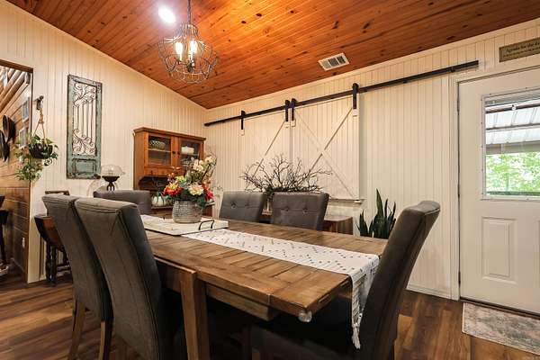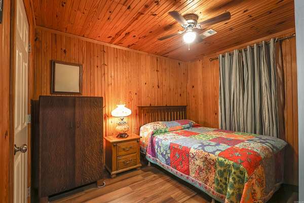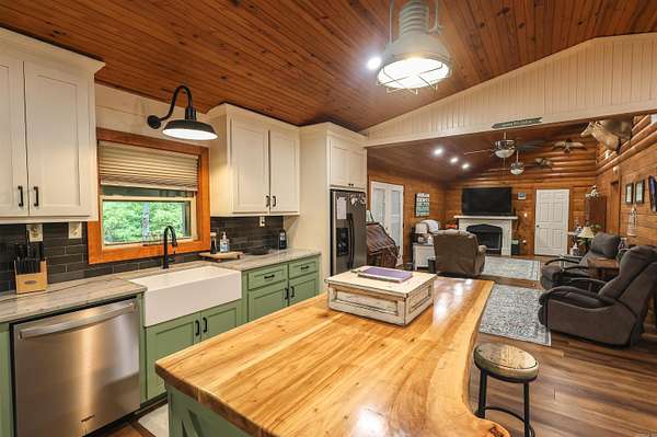 Charming and beautifully updated log home in the Riverchase Subdivision, offering 3 bedrooms & 2 baths with approx. 1,634± square feet on 3.28± acres. Originally a 2-bedroom home, the seller expanded the property in 2020 to include an additional bedroom, bathroom, and approximately 850± sq ft, along with updates that blend modern convenience with classic log home character. Tucked away within the subdivision while still located inside city limits, it offers a unique combination of privacy and accessibility. Inside, you’ll find LVP flooring throughout and a warm, inviting living space highlighted by vaulted tongue-and-groove ceilings that create an open, airy feel. The kitchen is thoughtfully designed with a functional layout, ample storage, and a natural flow into the main living area, ideal for everyday living. The home offers comfortable, well-sized bedrooms, a practical layout, and plenty of storage throughout. Step outside to enjoy the back deck and fenced backyard, providing space for outdoor living or simply relaxing. An attached 2-car carport adds convenience, while a storage building offers additional space for tools, equipment, or hobbies. Nightly rentals not permitted.