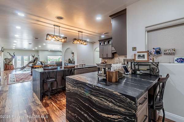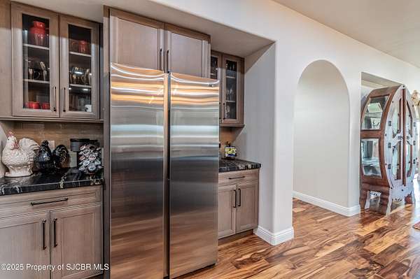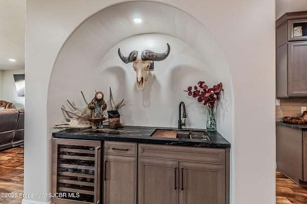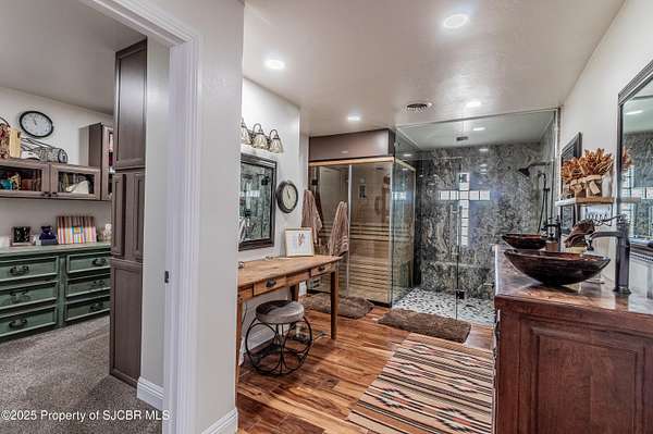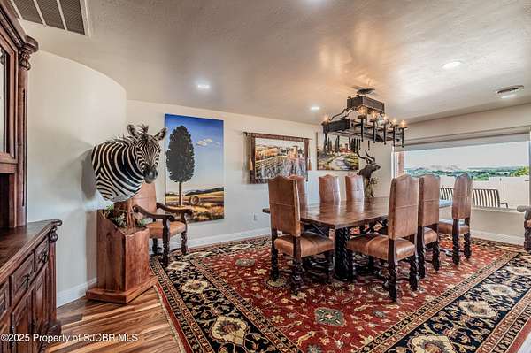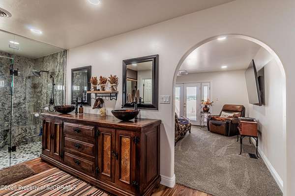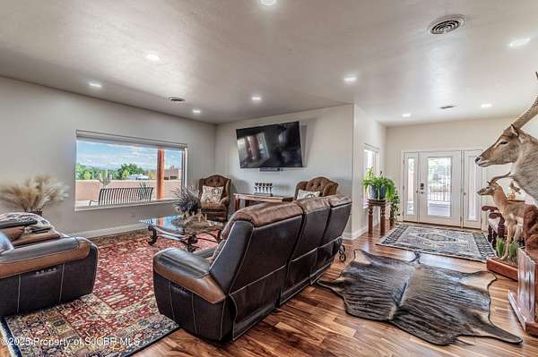 GORGEOUS CONSTRUCTION, HUGE VIEWS, MASSIVE DETACHED SHOP (3,175 SQFT) PLUS AN EXTRA LOT! This Anasazi beauty has been completely remodeled with high end upgrades! Open living concept with gourmet style kitchen, waterfall granite countertops with a leather finish, spacious island, Zline 48'' range, farm sink, custom cabinetry, upgraded fixtures, eat-in nook and additional storage. Living room with picture windows highlighting the La Plata Mountains, all new luxury vinyl flooring, primary bedroom features a glass walled tile shower, built-in wet sauna, 2 walk-in closets, granite countertops, dual vanities and private access to the covered patio. 2 additional guest bedrooms, each with an en-suite bathroom plus a separate office adjacent to the half bath. Detached/Oversized pull through shop complete with 3,145 Sqft, 3 - 12 x 14 overhead bay doors and an additional garage door for added access, 16' ceilings, 15 tons of pure refrigerated cooling (3 - 5 ton units), plus 80,000 BTU of radiant overhead natural gas heaters, installed walk-in commercial refrigerator/freezer Kolpak units (5x6 each), 50 amp dedicated service for RV hookups, 2 - dedicated 30 amp outlets on each side of the shop for easy access. 400 Amps serve the property with 200 to the home and 200 to the shop, 220 yards of concrete poured for driveways and patio spaces, side access plus full wrap drive built intentionally for larger vehicles. Additional amenities include a covered back patio (between shop/house), concrete ribbon and water diversion between home/shop, iron gates for security, courtyard wall installed for privacy, over 1,000 sqft of covered, open air patio space with custom redwood beams and metal roofing, main home has 2 refrigerated cooling units, central heat plus a whole home water filtration system. THIS HOME IS INCREDIBLE AND THE LOT ACROSS THE STREET IS INCLUDED TO PROTECT THE VIEWS! Commercial refrigerator/freezer in the shop may be reserved by seller