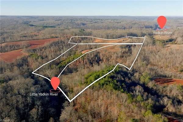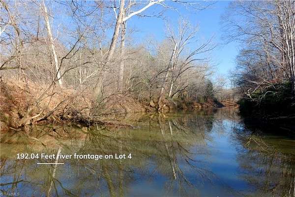 10.4 acres (Lot #4) with river frontage on the Little Yadkin River in Forsyth County, NC, featuring approx 1.7 acre fenced pasture, 6.7 acres woods, and a fertile bottom field which joins the LYRiver for over 100 feet plus 750 feet of additional creek frontage. Ideal for a single-family home, horses, livestock, hunting, recreation, or a mini-farm. Accessed via a newly constructed shared gravel drive built with geofabric underneath for heavy vehicle support. Buried power and fiber internet will serve each lot. Additional lots available. This property is part of a 216-acre, 16-lot restricted community where further subdivision is not permitted. Protective Covenants in place require $250/year POA dues. The community sits on a quiet, dead-end country road, just 3.8 miles from Pilot Mountain State Park, 7.5 miles from downtown King, and about 26 minutes from downtown Winston-Salem. Low county taxes. Visit the listing agent's website for attachments, video tour, and more details.
