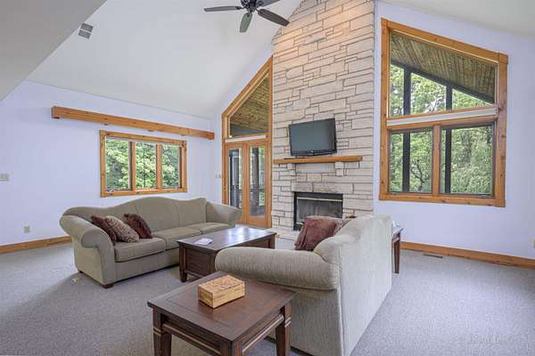 Welcome to 4S Acorn Court - A Tranquil Retreat in the Galena Territory! Nestled on over 2 acres in the scenic Galena Territory,this expansive 4-bedroom, 3.5-bathroom home offers the perfect blend of peaceful seclusion and modern functionality. Whether you're seeking a serene getaway or a house built for entertaining, this property has it all--just two miles from the Territory Owner's Club and Marina. Step inside to an open-concept main level featuring a spacious living room and kitchen combination with bar seating, a stunning floor-to-ceiling limestone fireplace, and abundant natural light. A separate dining area and a beautiful screened-in porch provide even more space for hosting and relaxation. You'll also find a large master suite with a full bathroom, an ensuite deck offering privacy and comfort, and direct access to the wrap-around. The lower level is designed for versatility, with a cozy family room centered around a second wood-burning fireplace, a bedroom with a loft, a dedicated home office, a full bath, and a screened-in porch--ideal for remote work or entertaining. Upstairs, you'll find two additional bedrooms and a shared full bath, while the primary suite on the main level offers privacy and comfort. Recent updates enhance both form and function, including new: tankless on-demand water heater, roof (~2015), HVAC system (~2017), exterior painting (2020), multiple bathroom renovations, carpet in upper bedrooms (2021), carpet in living room, dining room, stairs, and landing (2022), windows (dining room, master bedroom, lower-level bedroom and office - 2025), and sliding door (master bedroom - 2025). Don't miss this rare opportunity to own a move-in-ready retreat in one of the area's most sought-after communities.
