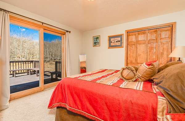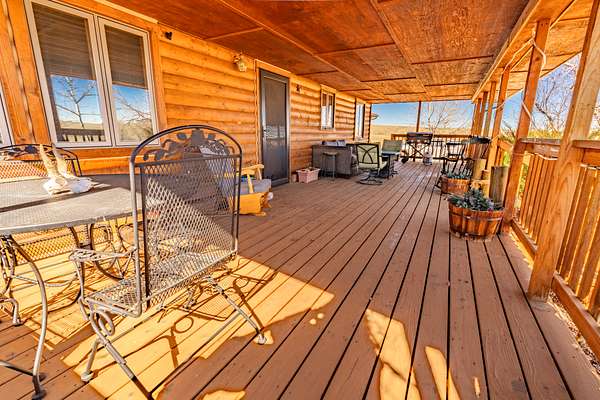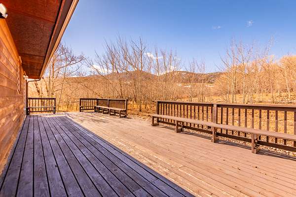 Outside, the property offers a spacious covered deck with plenty of room to enjoy Wyoming’s stunning sunrises. The attached garage offers storage for vehicles or gear, and the driveway provides easy access. With mature trees providing shade, natural beauty, and home for wildlife, this 48-acre parcel feels like your own private ranch, yet it’s part of the larger Wild Horse Ranch community.