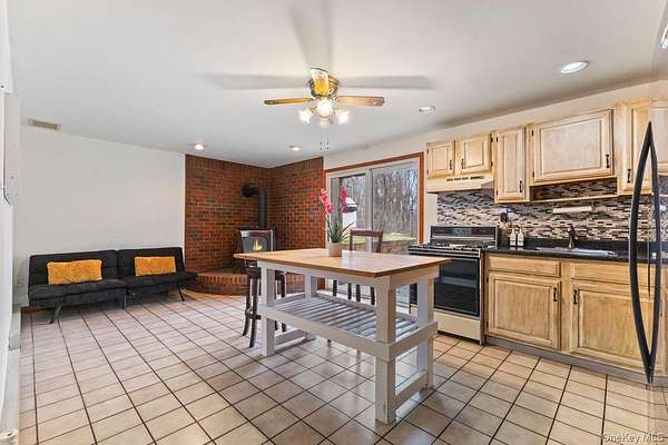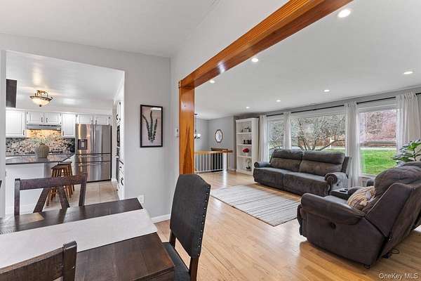 Nestled on nearly 2 acres, this property features a legal mother/daughter apartment-perfect for extended family, guests, or multi-generational living. Discover the ideal blend of space, comfort, and flexibility in this 4-bedroom, 3-bathroom home in the Mahopac School District. The main level offers a bright, open layout with a spacious living room, dining area, updated hall bathroom and an updated kitchen complete with a center island, Quartz countertops, 5 burner gas cooktop and new stainless-steel appliances. Main floor features three bedrooms including a primary suite with an updated ensuite bathroom - all freshly painted with new hardwood floors. The lower level features a one-bedroom apartment with its own kitchen area and cozy living space with a wood-burning/pellet stove ,large storage closet, a full bathroom and walk-out access to the backyard-ideal for extended family living arrangements. A freshly paved driveway and two-car garage with laundry add to the home's convenience. French doors open to a private deck overlooking the expansive backyard, offering an incredible outdoor setting for entertaining, gardening, relaxing, or future possibilities. Situated on a beautiful corner lot on a cul-de-sac street, this home offers country ambiance and a natural setting. With generous land, modern updates, and flexible living space, 4 Stonewall Farm Rd is a rare opportunity in Putnam County. Other features of convenience include automatic generator, and an invisible dog fence. Taxes do not include star savings of $861.58/year.
