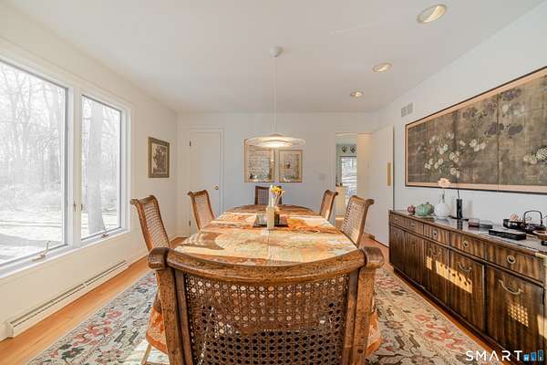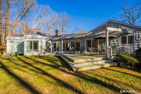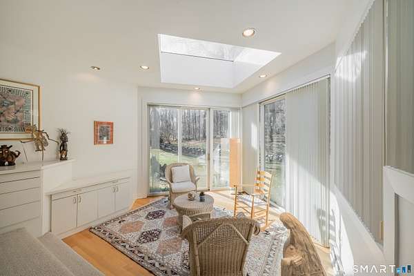 Located in a desirable double culdesac neighborhood in central Woodbridge, this custom Berner Lohne built U-shaped contemporary ranch offers privacy, timeless design, and easy one-level living. A circular driveway provides direct access to the main level and leads into a private courtyard-style setting, complemented by a professionally landscaped yard with classic stonewalls and a bluestone courtyard. The home features hardwood floors throughout and sun-filled living spaces ideal for everyday living and entertaining. The family room showcases vaulted ceilings, while the kitchen has been updated with new quartzite countertops and opens nicely to the main living areas. The home offers four bedrooms, two full baths, and one-half bath, including a stunning primary suite addition with his and her walk-in closets and a dramatic spa-like bath featuring walls of glass, a whirlpool tub, and double vanities. Additional highlights include a two car garage a walk-out basement with private side entrance and a propane-operated whole-house generator. Conveniently located near Yale, major highways, shopping, and dining, this home presents a rare opportunity to enjoy refined ranch-style living in one of Woodbridge's most sought-after neighborhoods.