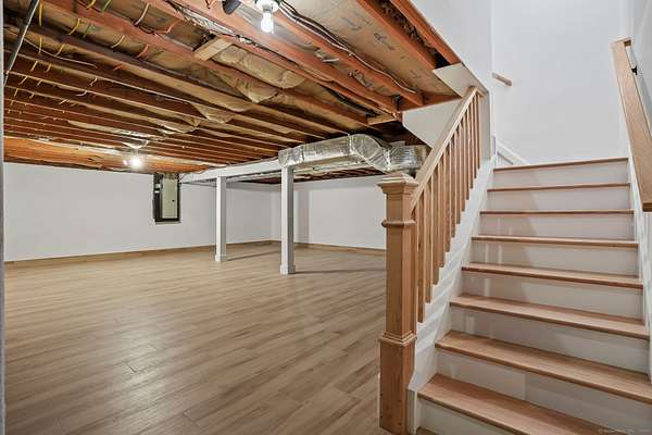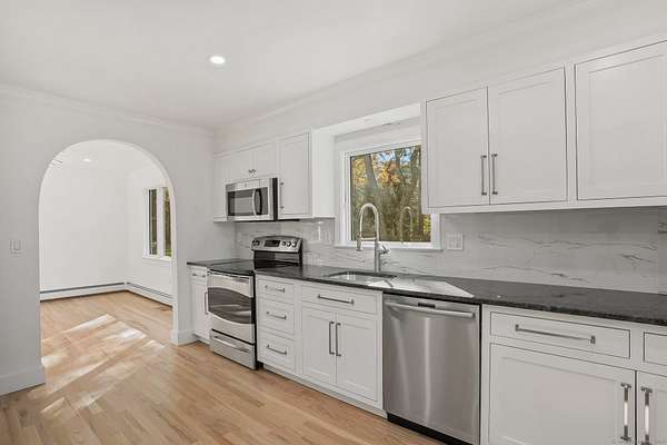 This beautifully renovated 5-bedroom Colonial in Lower Weston, Connecticut, exemplifies exceptional craftsmanship and attention to detail throughout. Set on a level, two-acre corner lot, the home offers both privacy and a tranquil setting. The modern kitchen features top-quality finishes and flows seamlessly into the family and dining rooms, overlooking a picturesque backyard. The living room, with a wood-burning fireplace and sliding doors to the deck, is perfect for indoor-outdoor entertaining. A sun-filled first-floor bedroom provides flexibility as a guest room or home office. Upstairs, the primary suite is a true retreat, featuring a brand-new bathroom with radiant-heated floors, generous closet space, and a quiet, private setting. 3 additional bedrooms on the second floor provide comfortable accommodations for family or guests, complemented by an attic that offers additional storage. The basement provides 1,372 sq. ft. of flexible space, ideal for a home gym, media room, or recreation area. Outside, the home is surrounded by tranquil, well-maintained grounds, creating a peaceful and inviting setting perfect for relaxation, recreation, or entertaining. Located just minutes from Weston's top-rated schools, shops, restaurants, and recreational amenities. Convenient access to the Merritt Parkway and Westport Metro-North Station, offering a direct commute to NYC's Grand Central Station in just over an hour.