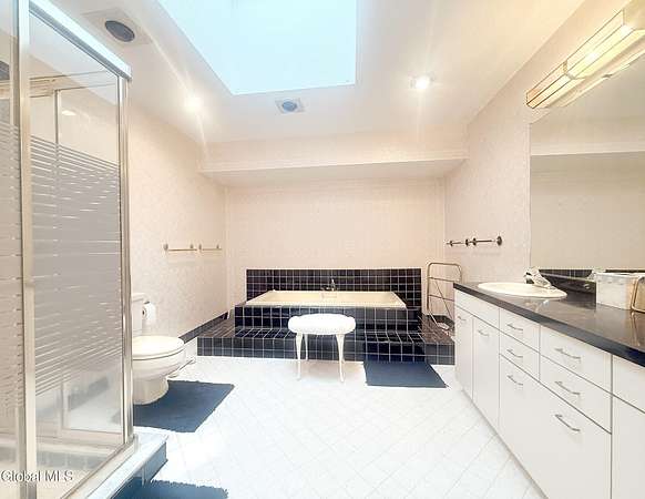 Est $3,980/moThis spacious contemporary home has a magnificent lot offering exceptional privacy and a running brook along the rear line of the property. The open floor plan greets your guest as they enter the home overlooking the dining room and living room providing fantastic views of the rear yard through a wall of windows and vaulted ceiling with skylights. The primary bedroom provides a spacious tile bath with jacuzzi and a shower. Finished on 3 levels there is room and privacy for everyone to enjoy