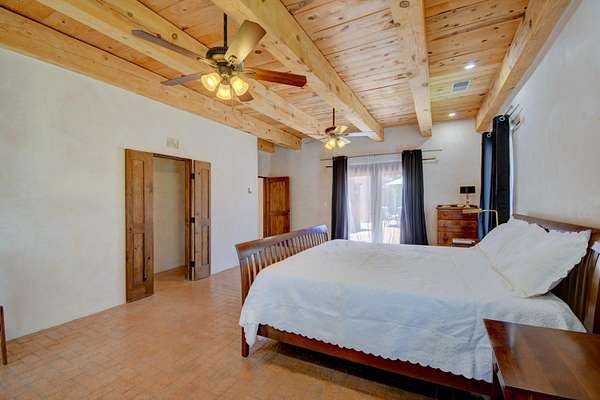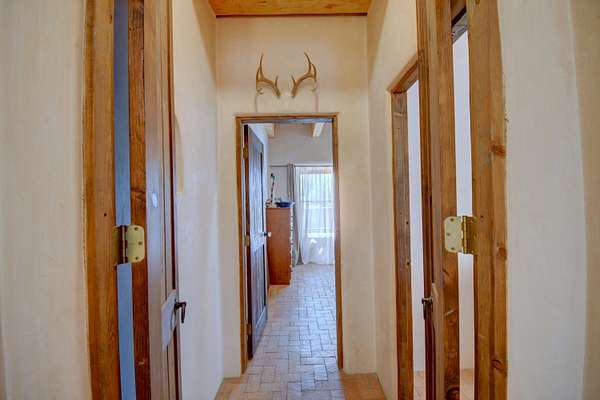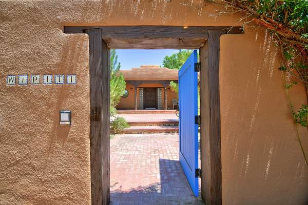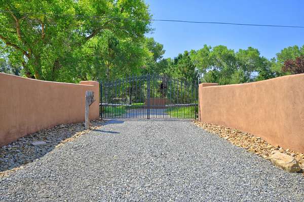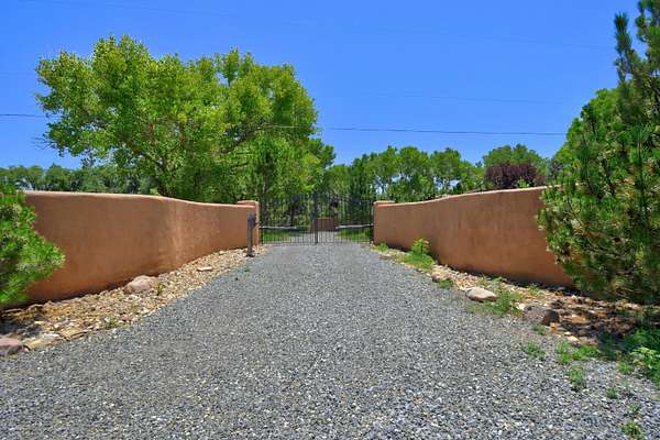 Head South on I-25 out of Albuquerque, exit NM 47 South Exit 215, travel about 8 miles and turn right on South Bosque Loop, turn left on McNew Rd, turn right onto Sutton Ln, take first left onto Wapiti Ln, Entrance to home is on the left, blue gate to courtyard.