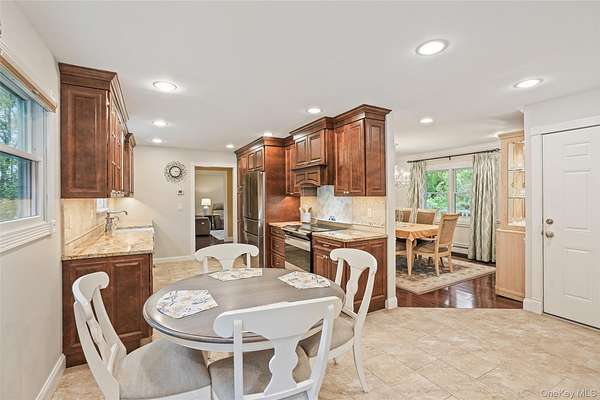 Set on over two acres of beautifully landscaped property, this stunning 4-bedroom, 2.5 bath Colonial offers the perfect combination of classic charm and thoughtful updates. Hardwood floors flow seamlessly throughout, complemented by elegant recessed lighting that enhances each room's warmth and style. The spacious main level features a bright living room, formal dining room, cozy family room and a well-equipped kitchen with heated floors, granite counter tops and SS appliances, ideal for family gatherings. The second floor features a primary bedroom with its own updated bath offering a fresh and modern feel. Three additional bedrooms and a contemporary hall bath, complete the upstairs layout. This home also includes an unfinished basement with a wood burning stove - perfect for extra storage or the opportunity to finish and expand your living space. Step outside to your backyard and enjoy the above-ground salt water pool, perfect for summer fun and relaxing weekends. In addition the home offers a 2-car garage, a welcoming front porch, landscaped yard, and plenty of space for outdoor dining or entertaining. Enjoy peace of mind with recent mechanical upgrades, including a brand new oil tank (2025), new hot water heater (2024), washer & dryer (2022), and a Biasi boiler installed in (2016), generator hook-up, canine electrical fence and so much more. Located in a desirable neighborhood close to schools, shopping and highways, this home offers comfort & convenience - truly a place to call home.