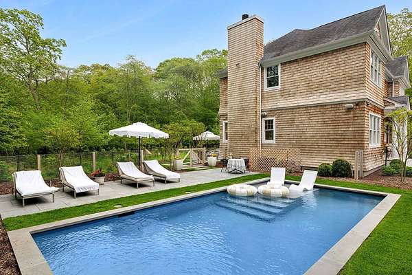 Set on 1.69 beautifully landscaped acres in a peaceful setting, this renovated traditional home is ready for immediate luxury living in the Hamptons. Cedar-shake siding and classic traditional architecture frame a 4-bedroom, 5.5-bath residence designed for easy, elevated living both indoors and out. Inside, find 4,700 +/- sq. ft. of light-filled interiors with an effortless open floor plan. The heart of the home is a thoughtfully renovated kitchen, blending functionality with refined finishes and anchored by generous prep space and top-grade appliances. The adjoining formal dining room provides an elegant setting for gatherings, while the spacious living room, paired with a cozy den, invites casual relaxation or sophisticated entertaining. The primary suite offers a peaceful retreat, complete with dual walk-in closets and a beautifully appointed en-suite bath. Three additional guest bedrooms are all en-suite, ensuring privacy and comfort for all. A finished lower level has an office and full bath, while extending the living space, which is ideal for a media room, play space, or fitness area. Outside, mature landscaping surrounds a serene heated gunite pool and an expansive patio, perfect for al fresco dining and summer lounging. A 2-car garage provides convenience and additional storage. On a quiet street just moments from the most desirable Hamptons Villages, this home offers seamless access to beaches, farm stands, and fine dining. With its refined interiors and gracious outdoor living spaces, this property delivers the quintessential Hamptons lifestyle in every season.