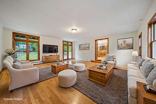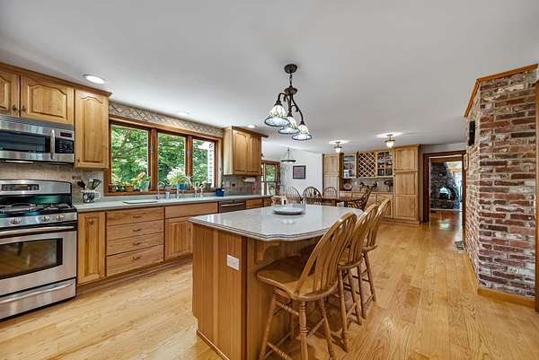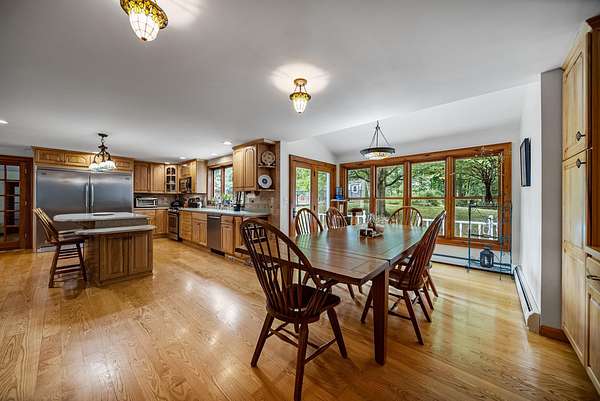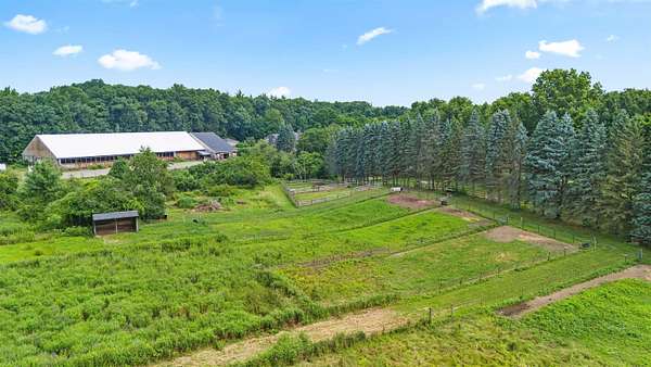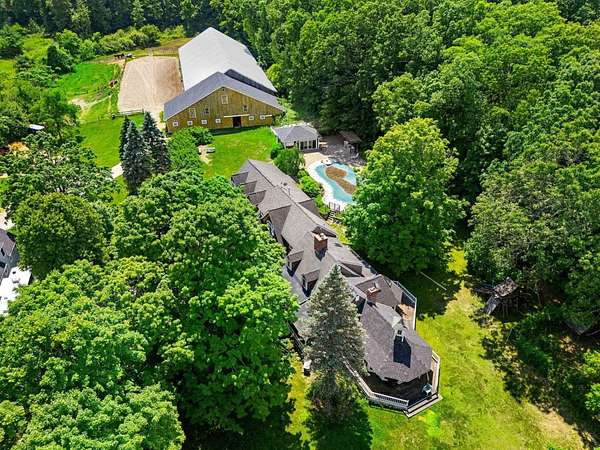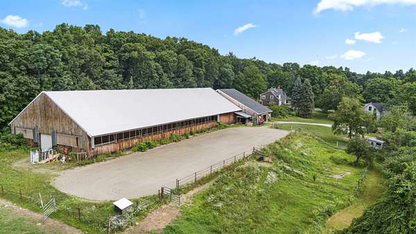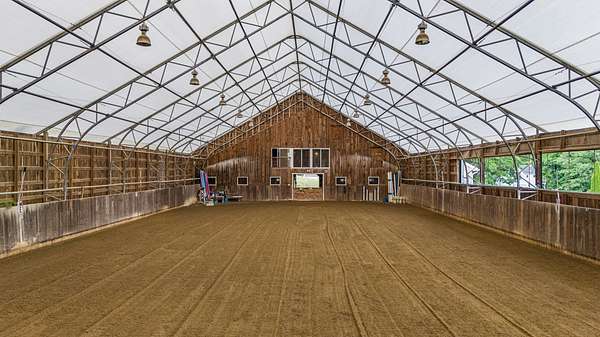 Welcome to a rare equestrian paradise on 10+ private, tree-lined acres in the heart of sought-after Hollis. This exceptional estate blends timeless elegance with premier horse facilities, all just minutes from shopping, dining, and the Mass border. The main residence offers 6+ bedrooms, 4 baths, and dual primary suites--one on each level. The upper-level primary features a spa-like en-suite, expansive closets, and a private deck. Throughout the home, you'll find rich hardwood floors, multiple fireplaces, and an effortless blend of formal and informal living spaces. A wraparound porch, finished lower level, and 3-car garage complete the home's offerings. Outdoor living is equally impressive with a heated gunite pool, custom patio, full outdoor kitchen, and pool house with living room, kitchenette, and two baths. A tennis court enhances the resort-style experience. Equestrian amenities include two 12-stall barns with tack/feed rooms, wash stall with hot water, and expansive haylofts. A 180' x 70' indoor arena with viewing room, outdoor riding ring, and acres of lush, fenced paddocks offer world-class riding conditions. A charming guest house with a 2-bedroom apartment and potential 3-stall barn or workshop adds even more versatility. This is a once-in-a-lifetime opportunity to own one of Southern New Hampshire's premier equestrian estates.