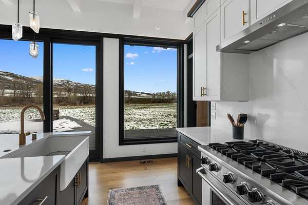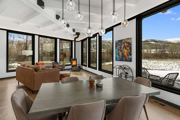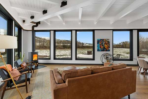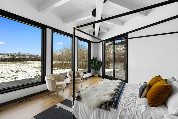 Before building the current home on the property, the owners spent many evenings camping under the stars on the property, enjoying the sounds of the river and the beautiful setting of the property within the cottonwood meadows and captivating views. As they considered the construction of the beautiful home that sits on the property today, they wanted to keep that natural feel of camping under the stars as a vision for the construction. The end result is a beautiful 2,000+- square foot Frank Lloyd Wright inspired home that maximizes views at all angles, providing the ultimate indoor and outdoor experience.