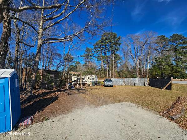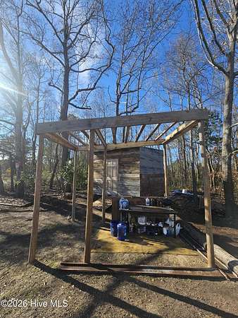 This camping getaway will help you connect with nature. Do you like kayaking & fishing? Offering almost 3 acres of land with creek access plus a nearby boat ramp provides a point for larger crafts to enter the river and sound. This plot also provides a barn, camper, outhouse, covered outdoor kitchen, small walking trails & more Best of all, No HOA or deed restrictions!!