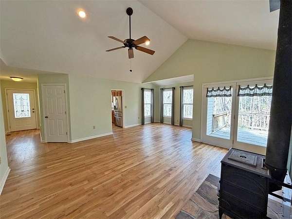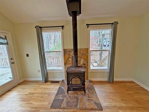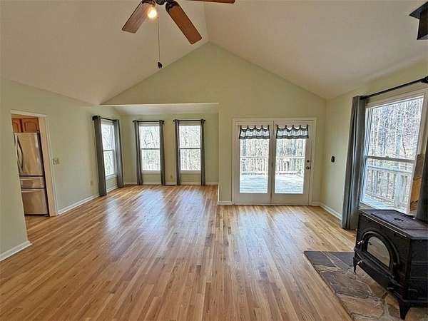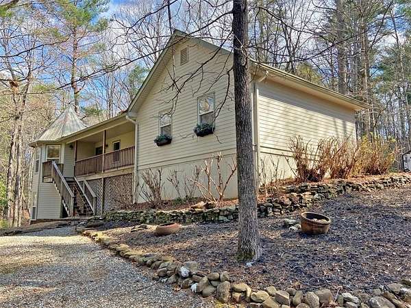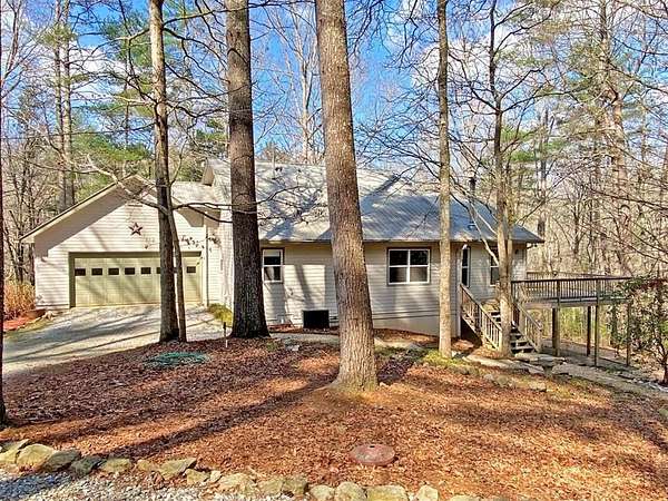Nimblewill Creek Community is for those that love and respect nature, it adjoins National Forest with access for homeowners and has a community area on Nimblewill Creek. So scenic, serene and peaceful! Wildlife a plenty, beautiful clear skies for star gazing and native vegetation. Welcome to this three bedroom, two bath home that is looking for its next family to share this and more on 5.10 acres. Hardwood flooring, vaulted ceilings, expansive light filled windows thru out that let the outside in, wood burning stove for cozy days and nights, large back deck for grilling and entertaining and so much space to walk, hike, garden or just meander. The National Forest access is only two lots away!! The community area on Nimblewill Creek is a short jaunt. All kitchen appliances, buried 1,000 gallon propane tank, whole house fan, private well and portable generator are all included. The unfinished daylight basement offers possible future expansion with stubbed out plumbing or simply use it as it is for storage, projects or workshop. Easy access to University of North Georgia, shopping, hiking, fishing, wineries and other great local attractions in the Dahlonega area. No STRs allowed.