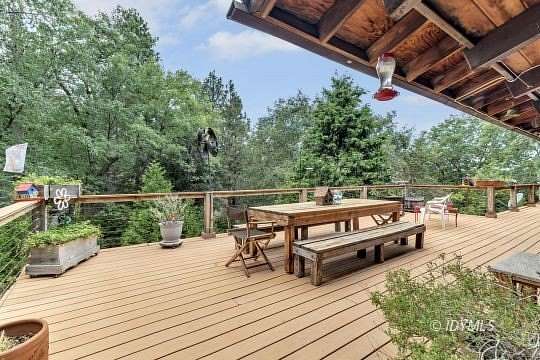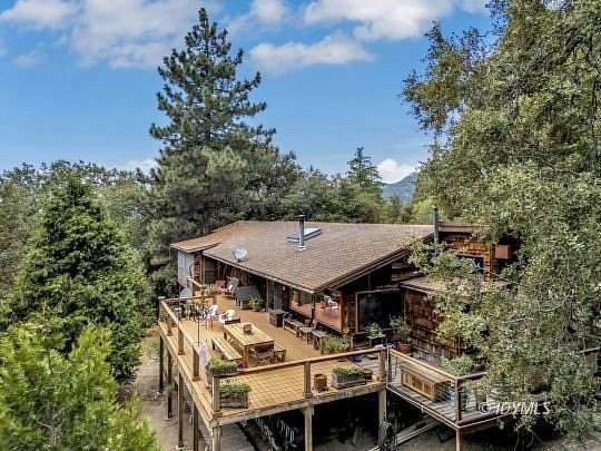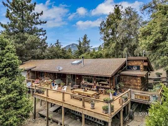 Three homes on three private acres, just five scenic miles from Idyllwild. This versatile property offers rare flexibility, income potential, and total privacy surrounded by nature. The main house features vaulted wood-beamed ceilings, open living and dining areas, and three bedrooms, including two ensuite units. The spacious quilting room provides abundant light and storage, while the primary suite includes a walk-in closet and large ensuite bath with a custom oval window. A screened and covered deck opens to beautiful sunset views, and a wraparound deck offers peaceful outdoor living. Downstairs, the second ensuite bedroom is large enough for a sitting area or gym. A 500 sq. ft. workshop provides the perfect space for tools and projects. Above the detached garage, a bright one-bedroom apartment includes vaulted ceilings, full kitchen, and laundry. The two-bedroom Garden House offers a fenced yard and forest views. So much potential on this peaceful 3-acre parcel, ideal for horses or creative living. Step out of your front door and right into nature with easy access to trails and exploration. Imagine your own retreat for family & friends. As your agent for full description/doc.