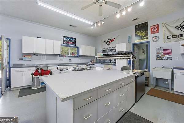 Awesome opportunity to make this Surrey Chase property your home! This 2,900 +/- sq ft home is situated on 2.01 acres. Home offers 3 bedrooms and 2 full bathrooms upstairs, along with an additional large family room featuring a gas fireplace and an office - ideal space for working from home or simply relaxing. The upstairs is already plumbed for a future kitchenette or wet bar, giving you even more flexibility. The laundry room is conveniently located upstairs and adds everyday ease. The main level includes a formal living room, dining room, keeping room, a half bathroom and a comfortable family room (with gas fireplace) - ideal for both entertaining and everyday living. The kitchen features a center island with plenty of cabinets and workspace. Additional features include a central vacuum system and ample storage throughout. Another standout feature is the approximately 2,000 sq ft detached garage/workshop, complete with three garage bays - perfect for hobbyists or extra storage use. Several metal outbuildings will also convey with the sale. Bring your vision and make this home your own with personal updates and touches! Home is located in Phase I of the neighborhood, so you will enjoy the freedom of no HOA or CCRs. Short drive to I-20. Property is being sold As-Is.