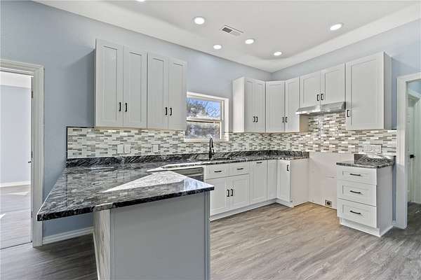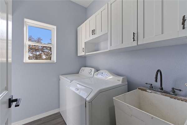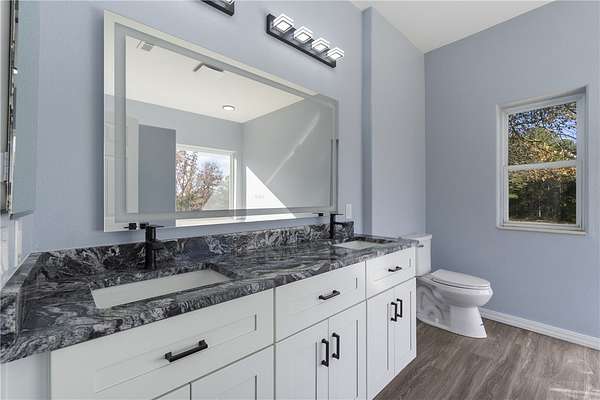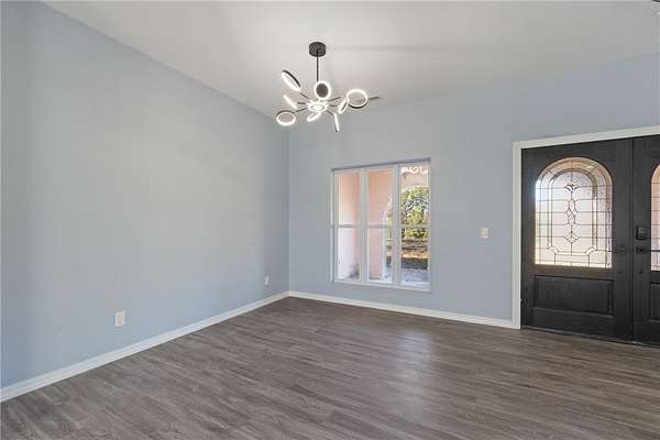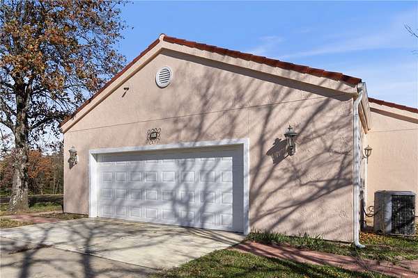 Escape to your own private retreat just minutes from town! This beautifully remodeled 4-bedroom, 2-bath Mediterranean-style home offers 2,143 sq ft of updated living space on 4.12 secluded acres. Renovated top to bottom in 2025, it features soaring ceilings, fresh paint, new flooring, modern lighting, and elegant designer finishes throughout. The stunning kitchen boasts quartz countertops, soft-close cabinetry, and a formal dining area ideal for gatherings. Each bathroom has new vanities with quartz countertops and backlit mirrors. Enjoy an open-concept family room with an electric fireplace or unwind in the luxurious primary suite with a Jetta Jacuzzi tub, rain shower, and huge walk-in closet. The oversized 2-car garage includes a workspace area. A charming 10x14 outbuilding with porch adds versatility for storage, hobbies, or a studio. Move-in ready and perfectly blending country charm with modern luxury-your peaceful escape awaits!