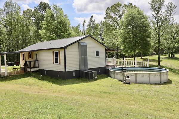 Est $942/mo3 bedroom 2 bath on 4.36 acres of land. Front porch and single carport on back. Above ground pool with deck. 24' x 30' shop with open covered 12' x 30' on both sides. Shop has electricity and water. Large Metal open covered shed. And a storage shed. Electric hookup for Mobile home or RV.Beautiful peaceful country living.