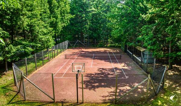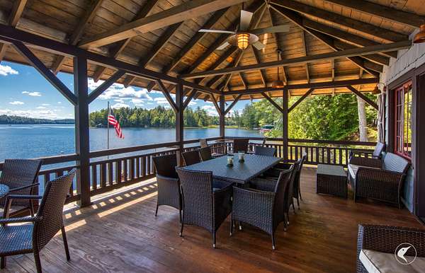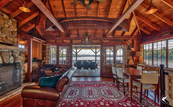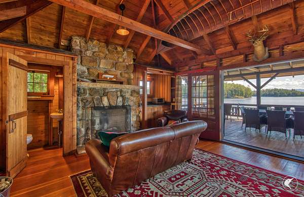 Back Bay Camp offers an exceptional waterfront retreat on the scenic shores of Upper Saranac Lake, combining historic Adirondack charm with modern luxury. Nestled on 340 feet of pristine lakefront with a sandy bottom, this unique property presents a rare opportunity to own a beautifully restored 1920s camp, fully equipped with air conditioning, high-end finishes, and unobstructed views. The main residence features four fireplaces, a contemporary kitchen with premium appliances, six bedrooms, an ante or adjoining room, four full bathrooms, one half bathroom, a game room, and a cozy study, making it perfect for family living and entertaining. Complementing the main house is an iconic two-level Adirondack boat house, offering spectacular vistas, a private deck, a large stone fireplace, a kitchenette, a half bath, and space for watercraft storage, including slips for two boats and space for kayaks and more. For outdoor enthusiasts, Back Bay Camp, boast a clay tennis court, providing for play on a clay rather than on an asphalt surface, along with a recently renovated outdoor kitchen that overlooks the lake--ideal for summer gatherings and cookouts. The property's convenient location on well-maintained, year-round access roads (paved or black-top roads maintained by the state and, in front of the house, by the county) provides easy access in any season, just 7 miles from Saranac Lake Airport, connecting travelers seamlessly to Boston and New York City. In winter, enjoy cross-country skiing, ice skating at local civic centers, downhill skiing at Whiteface Mountain, and skating on historic rinks. The camp's proximity to golf courses, local attractions, and outdoor adventures makes it an ideal year-round retreat for nature lovers and outdoor sports enthusiasts alike.