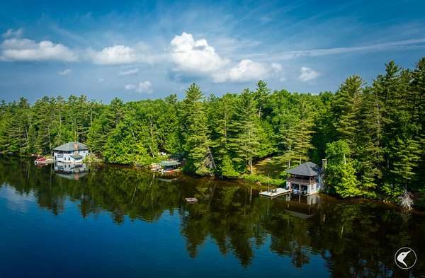 Coming from Lake Clear, bear left on County Route 46. Property is a quarter mile past the boat launch on the left.