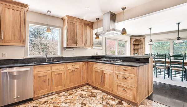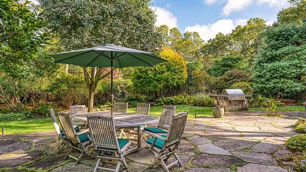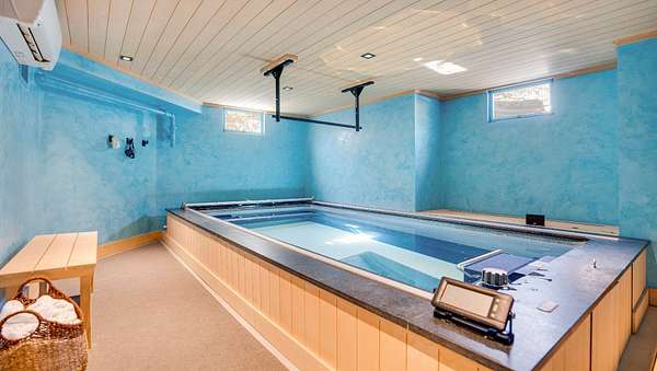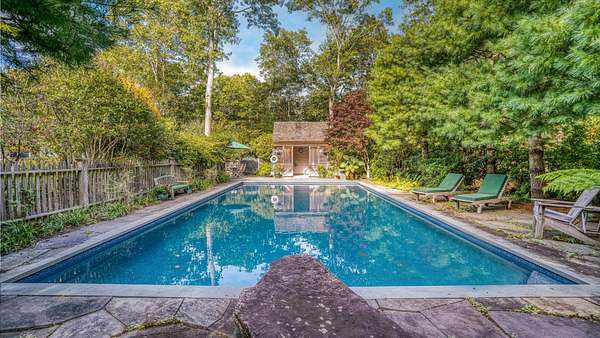 Set on a secluded 2 acres ensconced in mature landscaping with specimen plantings, this meticulously maintained 7 bedroom, 3200 SF Cape with modern flourishes features exceptional outdoor spaces with a heated 18x44' pool, cabana, a gorgeous built-in, stone grill kitchen, and wellness amenities with a sauna and Endless Swim indoor lap pool.Minutes to Atlantic Ocean beaches, the charms of Wainscott, and East Hampton Village, the generous properly is conveniently located yet perfectly private. A bright entry foyer leads to a voluminous living room with vaulted ceiling, wood-burning fireplace, charming window nook, and French doors to the rear grounds. The gourmet kitchen with zinc countertops and natural wood cabinetry connects to a formal dining room with French doors to the outdoor stone patio with grill kitchen. Two generous guest bedrooms and a full bath complete the main level. Upstairs has a spacious primary bedroom suite and an impressive, custom office space. The home's beautifully done extension offers a second living room, main level guest bedroom suite, and three bedrooms and a full bath upstairs. The partially finished basement boasts enviable wellness amenities with a full size sauna, Endless Swim indoor lap pool, and climbing wall. Excellent opportunity to own an immaculately maintained home with pool, cabana and detached two-car garage an a manicured 2 acres in an astonishingly convenient yet private location in the hamlet of Wainscott.