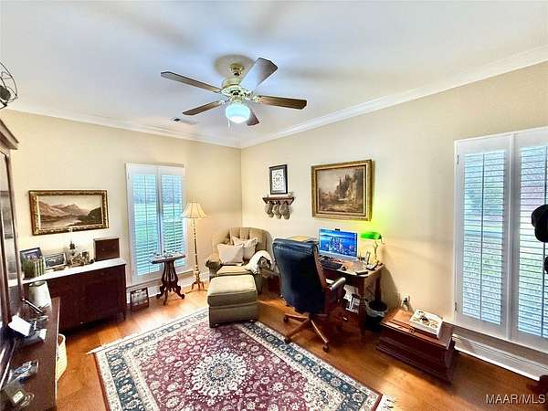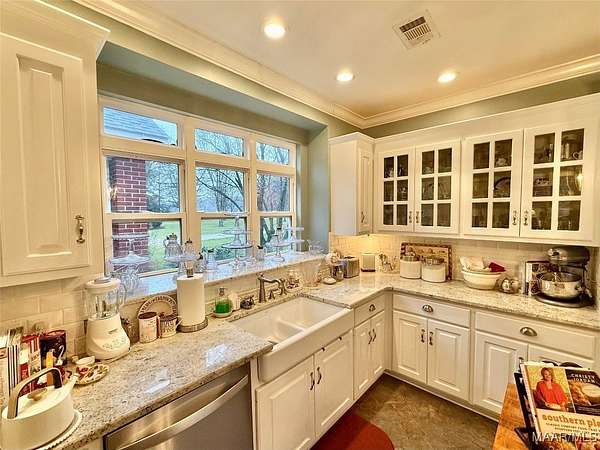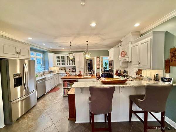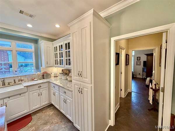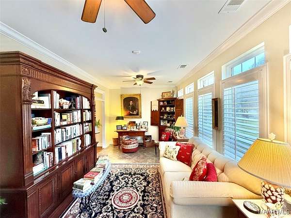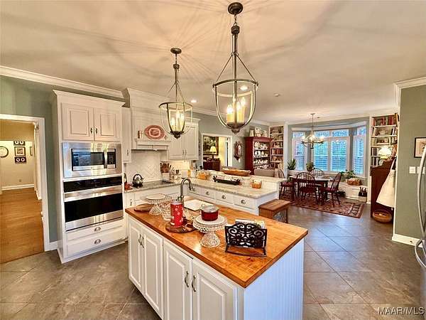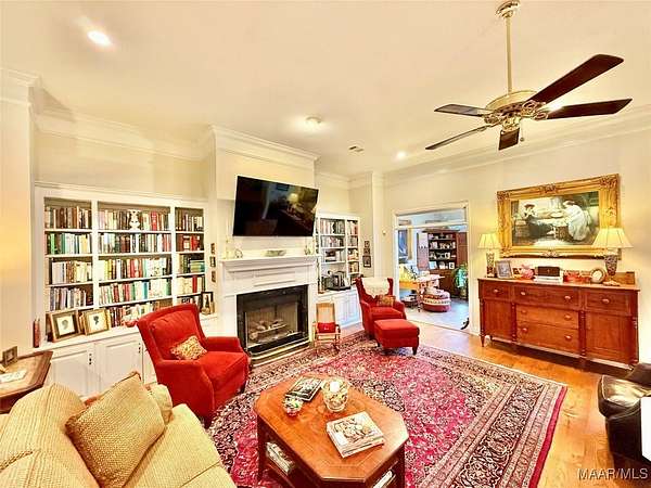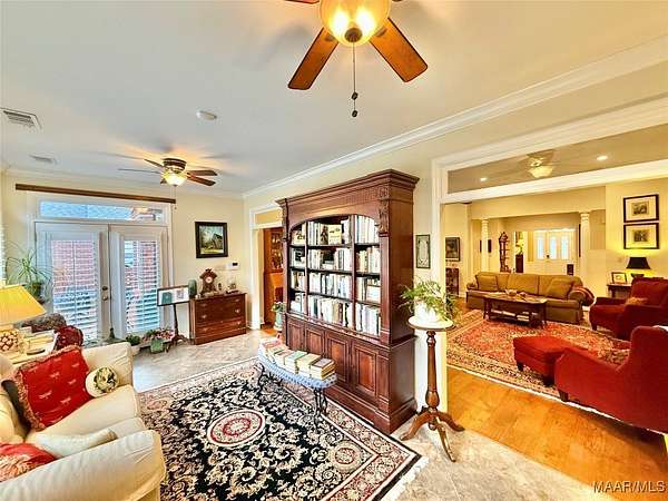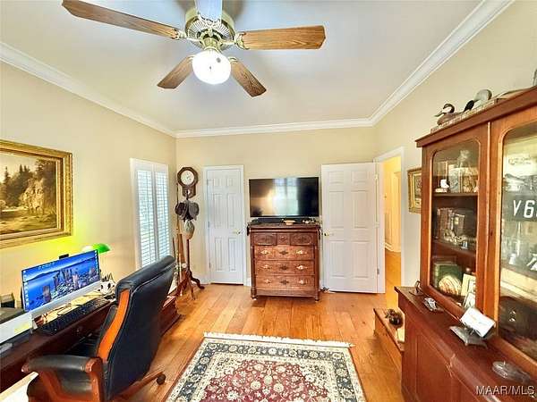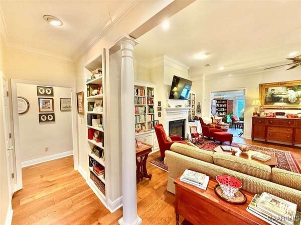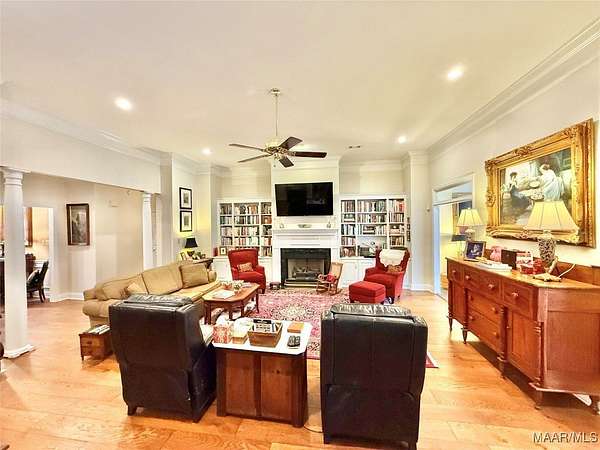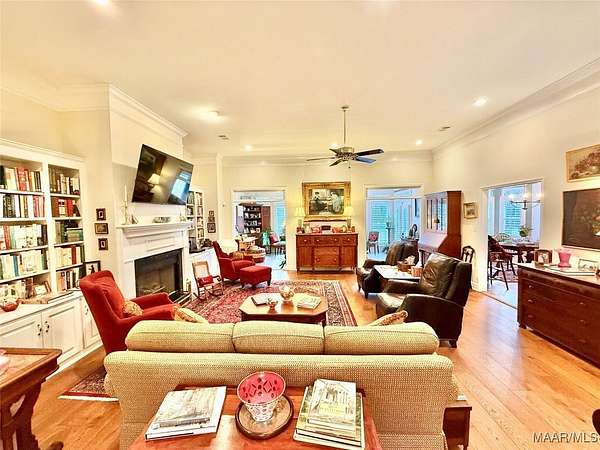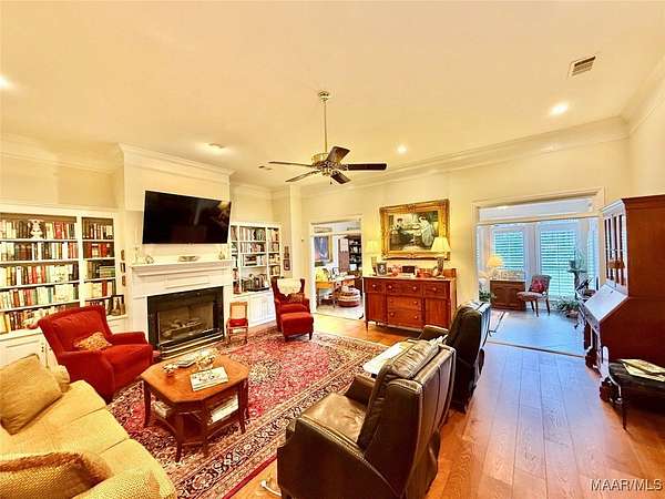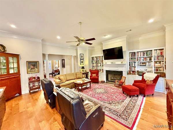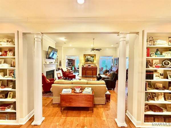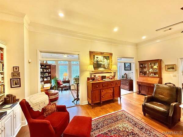 Welcome to this stunning one-owner custom home, completely renovated and situated on a beautifully landscaped 1.5-acre lot. Thoughtfully designed with elegance, comfort, and flexibility in mind, this 4-bedroom, 3-bath residence offers a desirable mother-in-law floor plan, providing a private suite with its own bath on a separate wing of the home - ideal for guests, extended family, or a private home office. Inside, the home has been meticulously updated throughout, featuring new 7-inch wide plank hardwood flooring, fresh designer paint, and plantation shutters in every room, creating a bright and timeless aesthetic. The heart of the home is the spacious 20x20 family room, highlighted by custom built-in shelving and a gas fireplace, perfect for both everyday living and elegant entertaining. Just off the family room, a beautiful sunroom with double doors opens to the private back patio, blending indoor and outdoor living. The gourmet kitchen is a chef's dream, offering granite countertops, a large center island, farmhouse sink, new appliances, and abundant custom cabinetry for exceptional storage and workspace. A spacious breakfast room with built-in shelving sits adjacent, along with a large laundry room complete with cabinetry and sink for added convenience. The primary suite is a true retreat, featuring a huge walk-in closet with custom wood shelving, and a spa-inspired bath with a pedestal soaking tub, oversized tiled shower with seating, built-in shelving, and granite counters Two additional guest bedrooms share a beautifully updated bath with a double granite vanity and tile shower with seating. Every closet in the home has been upgraded with custom wood shelving and metal hanging bars for superior organization. Additional highlights include a formal dining room, formal foyer, and wide hallways with built-in shelving, creating a refined, architectural feel throughout the home.