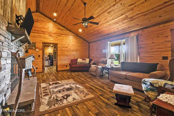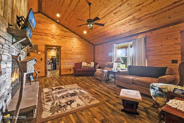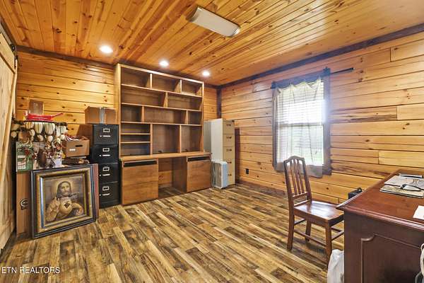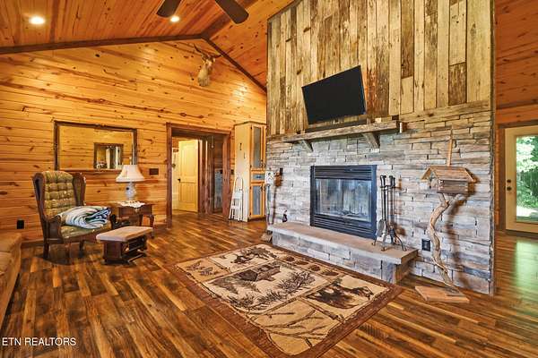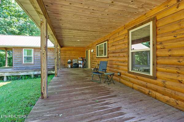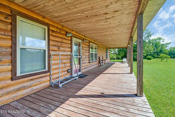 Welcome to this 3-bedrooms, 2-bath log home, nestled on 23.49 acres of scenic farmland, where rustic charm meets modern convenience. With over 15 acres of cleared land, this property is well-suited for farming, livestock, or simply enjoying vast open spaces. The centerpiece of the home is a stunning stone fireplace, anchoring the living area beneath soaring 20-foot cathedral ceilings that create a warm and inviting atmosphere. Designed for relaxation and appreciation of nature, the wraparound porch and deck offer panoramic views of the rolling countryside, perfect for quiet mornings or evening gatherings. Inside, you'll find three spacious bedrooms (only perks for 2) with two bathrooms, providing comfort and functionality. A large utility room adds extra convenience for household tasks, while a dedicated office space offers the perfect setup for working from home with high-speed internet or managing farm operations. This farm is fully equipped with barns and outbuildings, providing ample storage and functionality for agricultural needs, as well as workshops or hobby spaces. The surrounding landscape is alive with abundant wildlife, making it a dream for nature lovers and outdoor enthusiasts. Meandering creeks add to the charm, offering tranquil spots for reflection or exploration. Whether you envision a thriving farmstead, a hunting retreat, or a private escape in the countryside, this property delivers unmatched beauty and versatility. A rare opportunity to embrace the peaceful simplicity of country living while enjoying the grandeur of a large cabin. Call today!