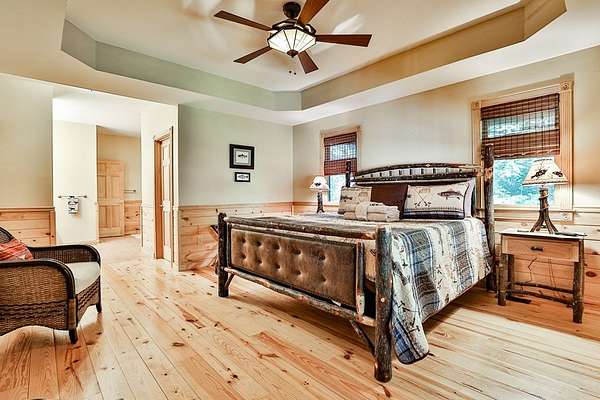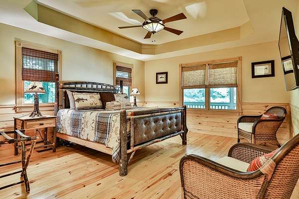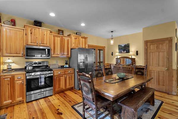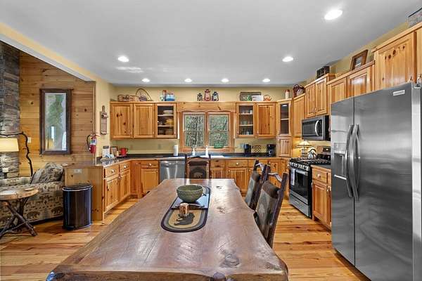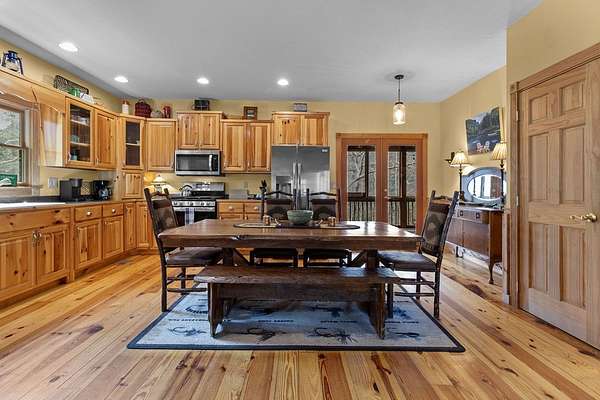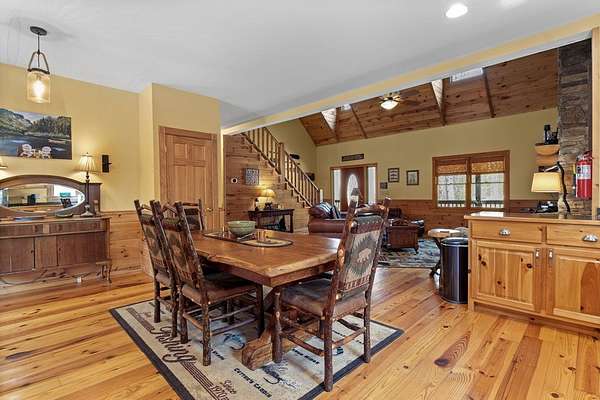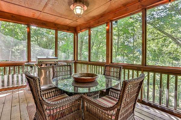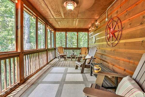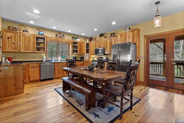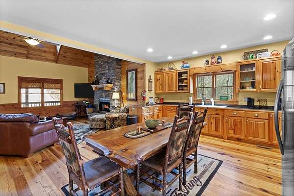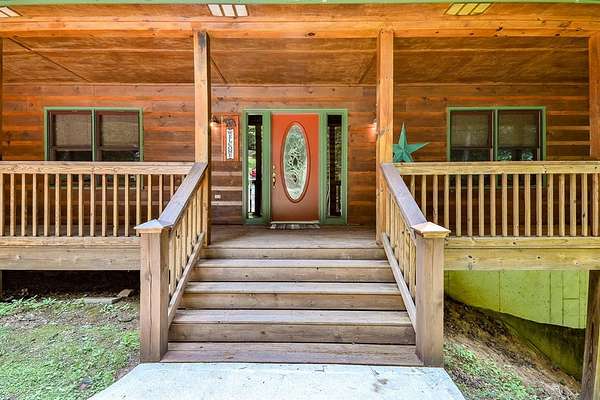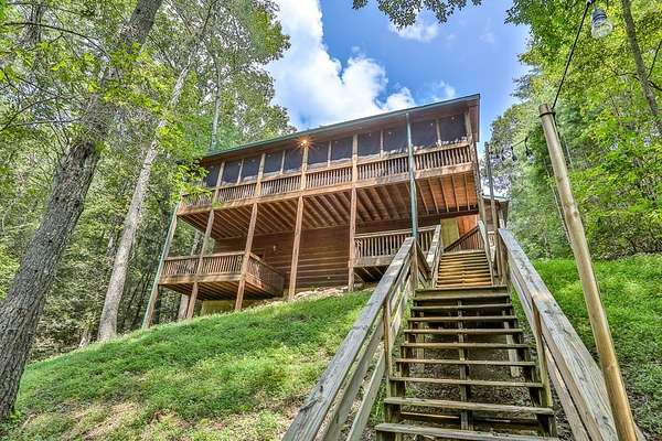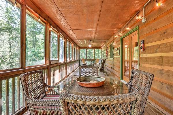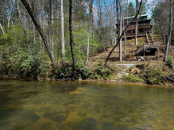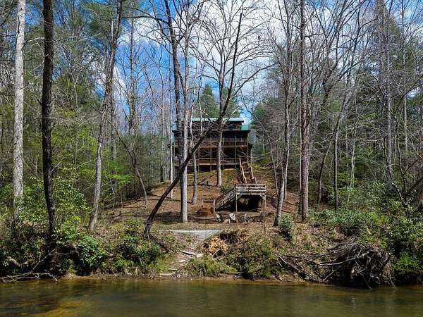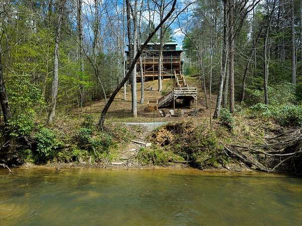 Follow the sound of rushing water to Troutin' Along, a log cabin retreat tucked above the scenic banks of Mountaintown Creek, one of North GA's renowned trout streams. From the moment you arrive, the setting steals the show with soothing water sounds, wooded privacy & 2.43 +/-acre peaceful cul-de-sac location. Inside, the expansive great room invites you to unwind with a striking floor-to-ceiling stacked stone gas fireplace, soaring ceilings & a warm blend of drywall & tongue-and-groove wood that flows effortlessly into the large eat-in kitchen featuring abundant cabinetry with glass-front accents, ample counter space & new stainless steel appliances. Just off the kitchen, a spacious screened porch becomes your front-row seat to the sights & sounds of the creek below. The primary suite is a comfortable retreat with tray ceiling, oversized walk-in closet & well-appointed ensuite bath with whirlpool tub, separate shower & private water closet. A convenient 1/2 bath, plus large closet & separate laundry closet finish the main level. Upstairs, a landing overlooks the great room & leads to 2 spacious bedrooms split by a full bath, with one having a large versatile bonus space ideal for a nursery, office, or reading nook. The fully finished terrace level expands your living space with a large game/living area, add'l bedroom with double French doors opening to the hot tub deck & full ensuite bath. Multiple outdoor living areas invite you to relax & recharge, from soaking in the hot tub while listening to the tumbling water, to gathering around the firepit just steps from the creek. Located within Coosawattee River Resort, enjoy access to indoor & outdoor pools, fitness center, tennis/pickleball courts, river parks & more, all just a short drive to Ellijay's wineries, orchards, downtown shopping/eateries & mountain adventures. Whether you're seeking a full-time escape, weekend getaway, or income-producing rental, Troutin' Along delivers the ultimate N GA mountain lifestyle.