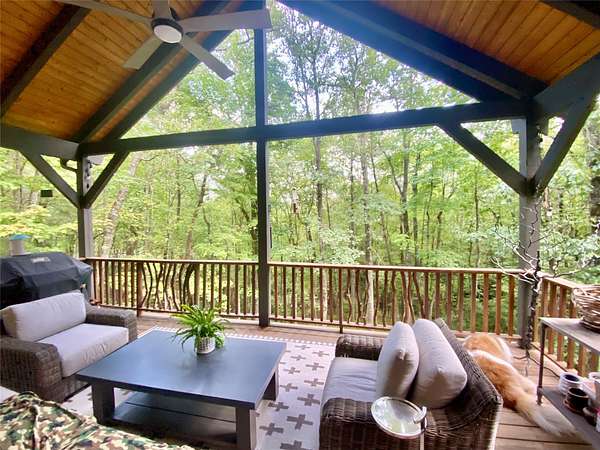 Nestled in a serene, wooded setting, this charming home offers both tranquility and warmth. With a thoughtful design and welcoming atmosphere, this home provides a peaceful sanctuary while still being conveniently located to shops and restaurants in the Cashiers-Highlands Plateau. Set on 1.6 private acres with desirable southern exposure, this 3-bedroom, 2.5 bath home in Holly Forest has been beautifully updated and well-maintained. The main level features hardwood floors, vaulted ceilings, abundant natural light and a wood-burning fireplace. The great room opens to a spacious, vaulted porch, perfect for year-round enjoyment. A separate laundry/mudroom with covered entry connects directly to the carport. The home offers easy, level entry and plenty of additional parking. The kitchen includes custom cabinetry, stainless steel appliances with gas cooktop, and recent upgrades such as quartzite countertops and backsplash, stainless sink, faucet and updated hardware. The primary suite is conveniently located on the main level and boasts vaulted ceilings and a private deck connecting to the main porch. The ensuite bathroom features a heated slate floor, separate water closet, garden tub, shower and double vanity, with upgrades including quartzite countertops, sinks, faucets, and fixtures. The lower level offers an additional living area with a stone fireplace and access to a large, covered outdoor stone patio with steps leading to a stone fire pit. This level also includes 2 bedrooms, a spacious bathroom with double vanities, and extra storage. Recent improvements include: newer roof, HVAC, updated light fixtures, window treatments, added storage underneath the carport and more. Ownership includes access to Sapphire Valley Resort amenities, including heated pools, tennis courts, pickleball courts, a fitness center, dog park, mini-golf, a 9-hole golf course, and Fairfield Lake for swimming and boating.