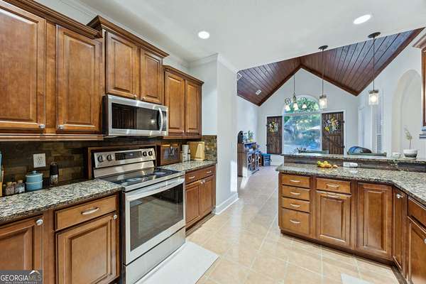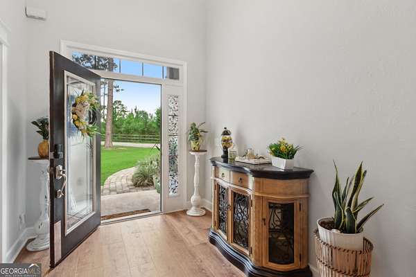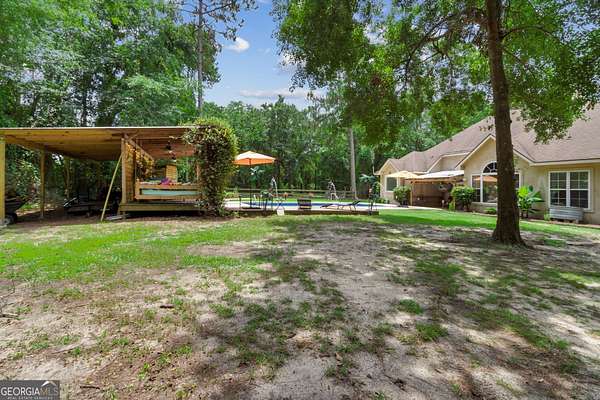 Seller taking back up offers. European-Inspired Estate on 6.3 Acres with Pool, Equestrian area & Endless Possibilities! 15,000 in negotiable seller concessions for buyer to use toward closing costs and or rate buy down. Just 3 miles from I-95 Exit 29, this one-of-a-kind 4-bedroom, 3-bath stucco home sits on 6.3 acres and blends classic European garden estate charm with modern comforts. Zoned AF (Forest Agricultural), this unique property offers space, style, and versatility - perfect for those seeking privacy, room to grow, or a hobby farm lifestyle. From the moment you enter, attention to detail shines. The formal dining room features custom tiled and wood-inlaid floors, a vaulted ceiling with wood coffers, and timeless elegance. The kitchen boasts granite countertops, stainless steel appliances, and a breakfast bar that flows into a cozy breakfast nook with a stained tongue-and-groove wood ceiling. The great room is a showstopper with cathedral ceilings, a fireplace, and access to the covered patio and sparkling in-ground saltwater pool with lanai and oversized deck - perfect for entertaining. The split bedroom layout includes: A private guest suite and full bath off the kitchen hallway, Two additional bedrooms with a Jack-and-Jill bath (double vanity & separate shower/tub room), A spacious primary suite with double tray ceiling, corner fireplace, two walk-in closets, and a luxurious bath featuring vaulted ceilings, dual vanities, a garden tub, and a large tiled walk-in shower. Step outside and enjoy the exterior of the 1acre house lot with an inground pool / covered back porch and additional covered lanai. RV parking - including 240/50 and 120/30 hookups, water, and sewer. The second 1-acre lot with horse corral and two open stables, a chicken coop, an additional 4.375-acre parcel offers a picturesque pond and cleared area ideal for gardening, future development, or additional livestock. Conveniently located: Under 40 minutes to NSB Kings Bay, 15-20 minutes to FLETC, Jekyll Island, and St. Simons Island, less than 10 minutes to schools, shopping, and dining, Homes like this are incredibly rare - don't miss your chance to own this peaceful retreat with space to dream big. Schedule your private showing today!
