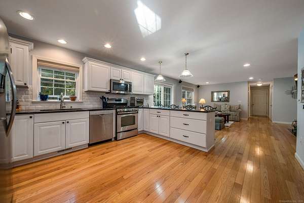 Beautifully and thoughtfully built in 2013, this custom designed 3 bed, 2 bath Ranch offers effortless one-floor living and a smart, open floor plan. The bright Living Room with a gas fireplace flows into the functional Kitchen highlighted by stainless appliances, granite counters and counter seating ideal for everyday living or entertaining. The Dining Room is directly off the Kitchen, continuing the open floor plan and connects to the Study which easily works as a quiet space, Library or a Home Office. The generously sized Primary Bedroom is highlighted by a walk in closet and an oversized Full Bath with a soaking tub, expansive cabinetry and smart functionality. The Laundry Room is nicely sized and provides additional storage space and is right off the Primary and Kitchen. On the right side of the home, you'll find two additional Guest Bedrooms and a Full Bath which round out the main floor. Downstairs you will find a large, unfinished basement that could be expanded to offer additional living area as needed. Outside you will find a lovely, large, and newly fenced in backyard - terrific for pets and play and a pretty patio area. Stunning seasonal blooms surround the front and back of this home making it really shine all year long. With the 2-car garage, public water, propane heat, a whole-house generator AND the desirable location on the Connecticut shoreline, this well maintained and intelligently constructed home combines comfort, convenience, and easy living!