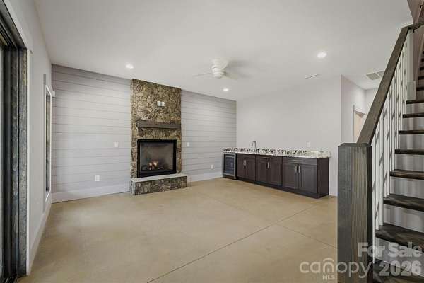 Set among beautifully maintained landscaping and mature surroundings, this charming mountain retreat features low-maintenance Hardy plank board-and-batten siding, a striking stone foundation, and stone-wrapped columns that create timeless curb appeal. Inside, the home welcomes you with vaulted ceilings and a stunning floor-to-ceiling stone fireplace that anchors the spacious yet cozy great room. Designed for both everyday comfort and entertaining, the open kitchen showcases granite countertops, a large center island, and ample cabinetry. Durable engineered hardwood floors run through the main living area, offering beauty and resilience. Outdoor living is a centerpiece of this property. Trex decking spans both the front porch and rear deck, while a massive screened-in back deck provides the perfect place to relax and enjoy the peaceful mountain surroundings. Below, a full concrete patio expands your outdoor entertaining options, complemented by a large firepit and generous usable yard space. The primary suite on the main level offers privacy and convenience with a walk-in closet and spacious bathroom, along with main-floor laundry. Upstairs, a charming loft with sliding barn door provides flexible space for an office, reading nook, or additional sleeping area, along with an additional bedroom. The finished basement is built for entertaining and gathering, highlighted by another full stone fireplace, a large granite wet bar, two additional bedrooms connected by a Jack-and-Jill bath, abundant storage, and a thoughtfully designed doghouse tucked beneath the stairs. Additional features include a tankless water heater, durable finishes throughout, and a layout equally suited for full-time living or a relaxing Lake James getaway. Tucked within the highly sought-after Old Wildlife Club on the shores of Lake James, 40 Kingfisher Trace offers the perfect balance of rustic elegance, thoughtful design, and low-maintenance mountain living. With a membership to Camp Lake James included, owners enjoy access to one of Lake James' premier amenity campuses featuring a lakefront swimming pool, fitness center, tennis and pickleball courts, dining, social gatherings, and waterfront bar. Old Wildlife Club is known for its peaceful wooded setting, charming mountain architecture, and close-knit lake lifestyle. Residents enjoy quiet streets perfect for walking or cart rides, easy access to the lake, and beautifully maintained surroundings that make every day feel like a getaway. Also included is an easy-to-access boatslip for year round, on-water boat storage, located just a short stroll or quick cart ride away, allowing you to be out on the shimmering waters of Lake James in minutes.