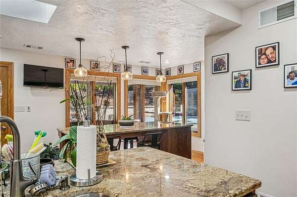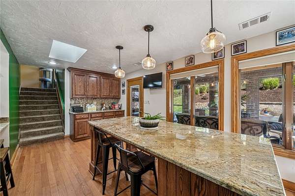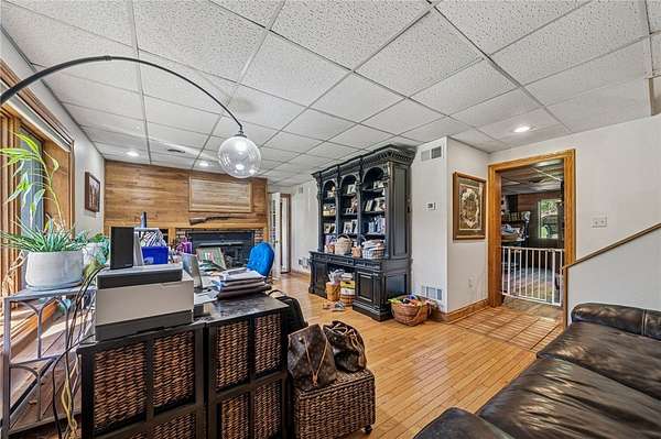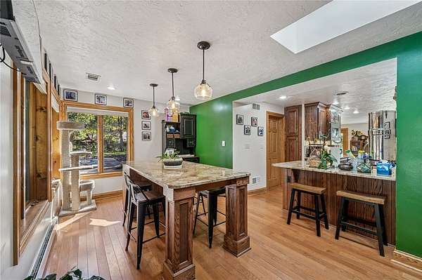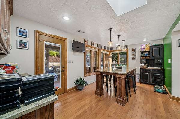 - Fireplace, Kitchen Island, Window Treatments