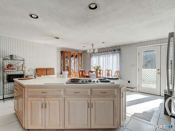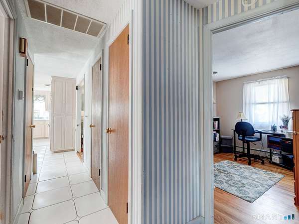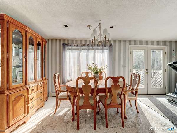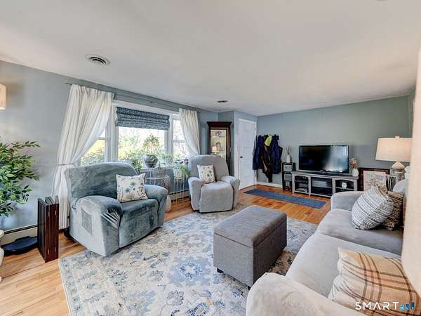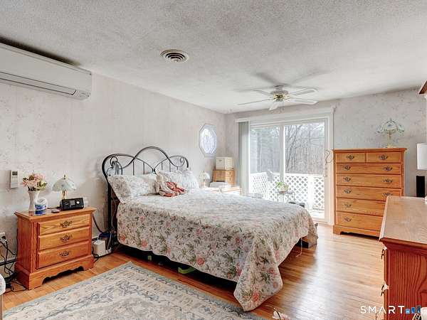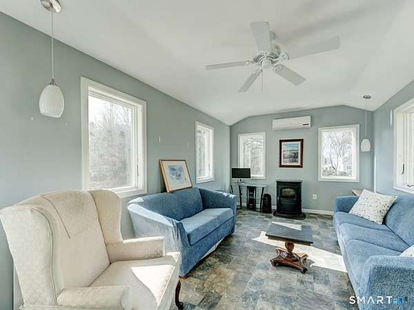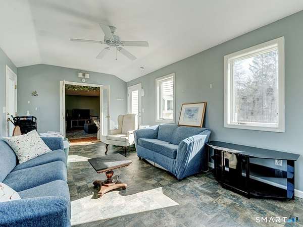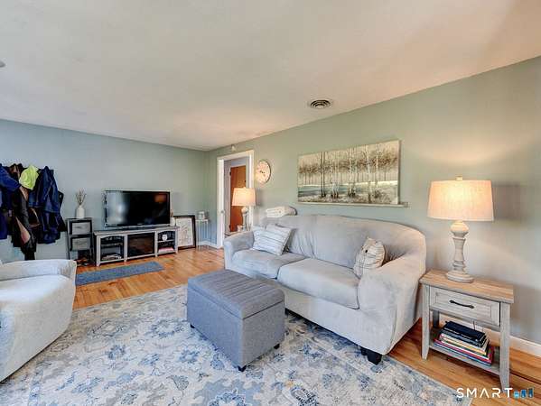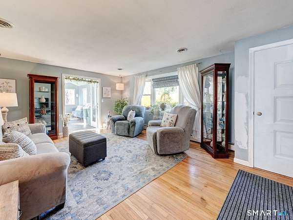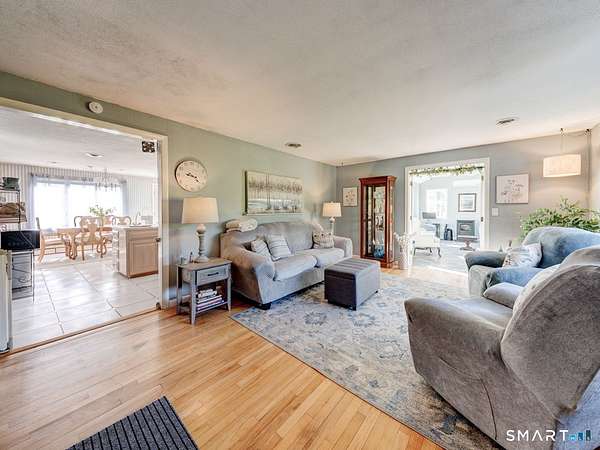 Charming 3-bedroom ranch set on 1.7 acres, abutting the Farmington Canal Heritage Trail with direct access. This one-level home features a 2-car attached garage and an open layout ideal for everyday living. The spacious primary bedroom offers sliders to a private deck, creating a peaceful retreat. Enjoy a bright, open kitchen flowing into the dining area with French doors leading to an expansive deck overlooking your own private backyard oasis. Hardwood flooring runs throughout, complemented by a sun-filled sunroom with abundant windows, pellet stove, and three mini-splits for added comfort. Additional highlights include central air and main-level laundry. A rare opportunity combining convenience, nature, and privacy - schedule your private showing today!