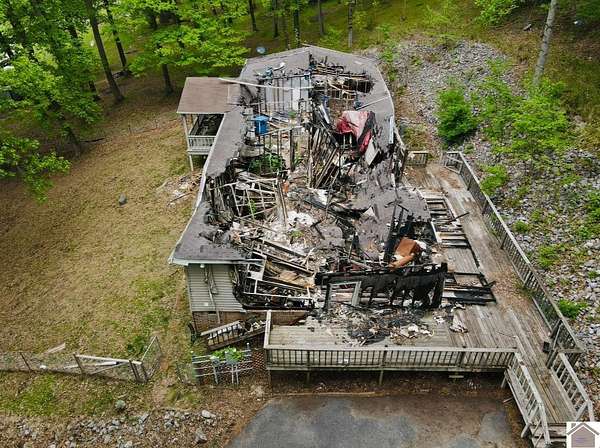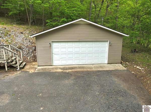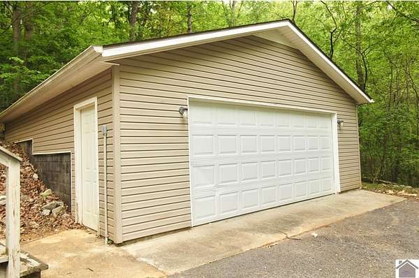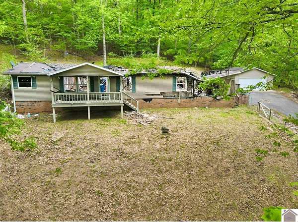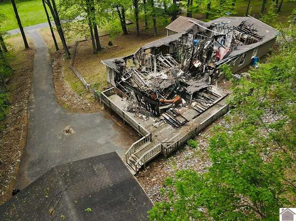 Discover the perfect canvas for your dream home near Lake Barkley! This 1.32-acre property features three spacious lots and is ideally less than a minute to lake access & located near several boat ramps! While the original 2,560 square foot home was lost to fire, the 24x30 detached garage remains in excellent condition, complete with electrical, concrete flooring, a workbench area, and a motorized garage door opener! The existing utilities include water, electrical, high-speed internet, and a septic system installed in 2003, accommodating up to eight people. Enjoy the paved driveway, fenced yard, and charming pea gravel walkway. The property's foundation offers a 32x80 footprint! Embrace this unique opportunity to build your lakeside haven!