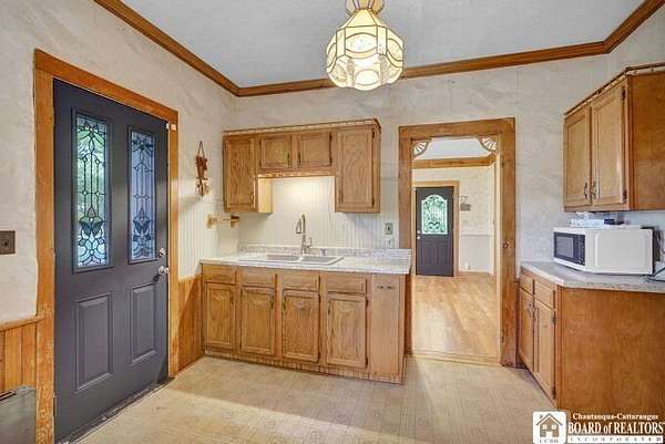 Step back in time with this well-maintained 1880 Victorian home, situated on 8 picturesque acres across four parcels in the heart of Friendship, NY. This property blends historic detail with unique outdoor features, making it a one-of-a-kind opportunity. Inside, the home highlights its rich history with custom stained-glass windows in the front bay, beautifully refinished original French doors and door casings, and original windows protected by storm inserts. A full basement offers additional space. The large kitchen has more than enough cupboards and counter space for those large family gatherings. Off from the kitchen is a large newly remodeled bathroom. Four bedrooms and 2 full baths, make this home a great family Outdoors, you'll find endless possibilities. The property adjoins the Shawmut Trail snowmobile corridor, providing direct access to recreation. A circular concrete driveway welcomes you among mature trees, landscaped flower beds, and expansive porches perfect for birdwatching or relaxing on a swing. The grounds boast exceptional features for entertaining and photography: a covered swing, gazebo, and a remarkable stone "castle" complete with a drawbridge and koi pond-an iconic backdrop for generations of weddings and prom pictures. Additional acreage provides pasture potential, along with an old barn that can easily be rebuilt. A spacious two-car garage with loft storage and a covered grilling/entertainment area rounds out this property's functionality. Whether you're searching for a full-time residence, event venue, or hobby farm, 40 Pennsylvania Ave offers unmatched character and opportunity. OMG rights are reserved. You don't want to miss this one and it won't be on the market long! Co list agent is a relative of the sellers. Delayed negotiations until 9/22/2025 at 3pm!