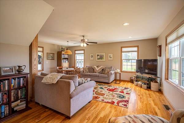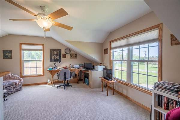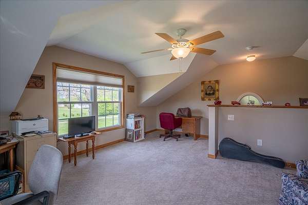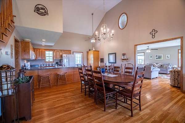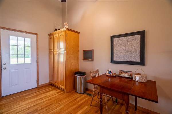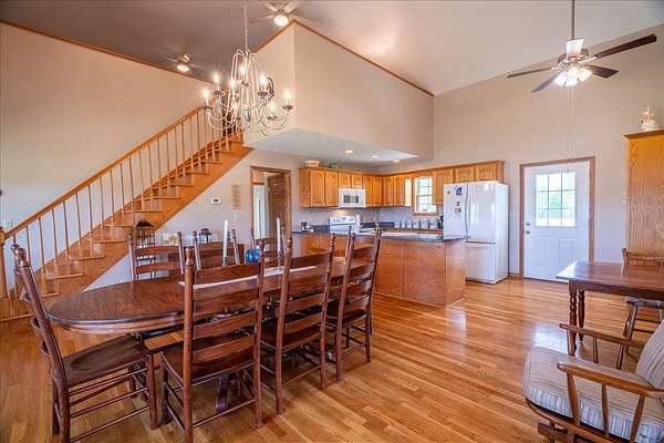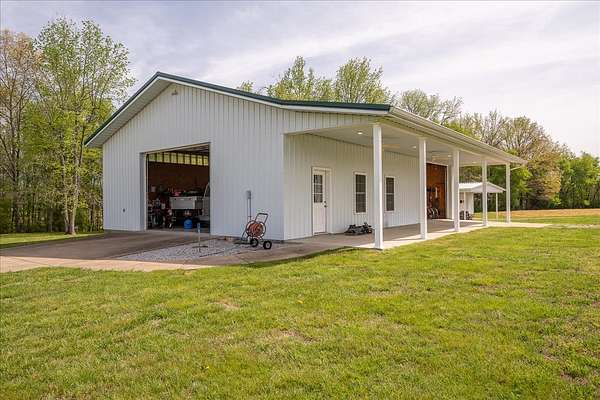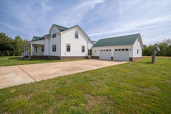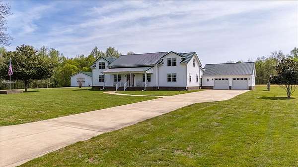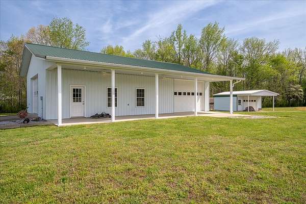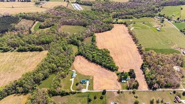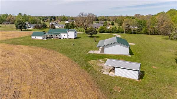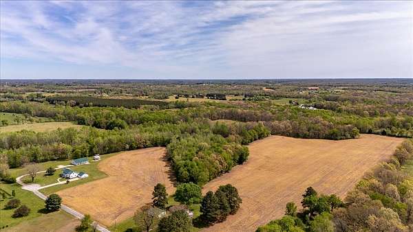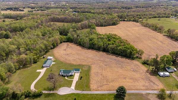 Once you visit this 60 acre paradise tucked away just south of Lawrenceburg, you will be ready to make this your home. This well cared for property has trails that will take you across the entire farm. So many options for additional housing throughout allows the perfect fit for those looking for a multi family opportunity. Love Branch has multiple springs feeding into it and is a great place to spend the day relaxing. 30 acres are currently farmed, 20-22 acres are cut for hay, and the remaining land is wooded. The home is so inviting with the cathedral ceiling in the kitchen and dining area and a large loft overlooking this space. There are 2 primary suites with large closets and full baths. One is on the main floor and the other on the 2nd floor. You will also find a home office with an amazing storage closet located over the living area. Offering 3 bedrooms, the office and loft could also be used as extra bedrooms. There is a 2 car garage, heated and cooled, connected to the house by a breezeway and it also has a full bath, built in cabinets and a staircase leading to the spacious storage area above the garage that is ready to be closed in if needed. The home is serviced by 3 separate heating and cooling units. In 2018 a 34x50, fully insulated shop was added with 2 large electric garage doors and an inviting front porch. Another insulated shed is perfect for lawnmowers and yard tools. So much love has been poured into this fabulous property and it does not go unnoticed!