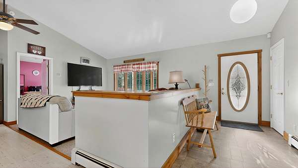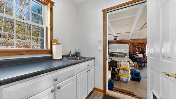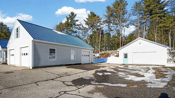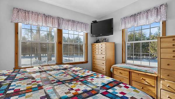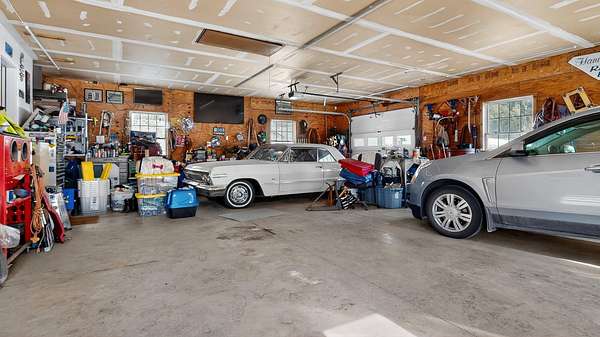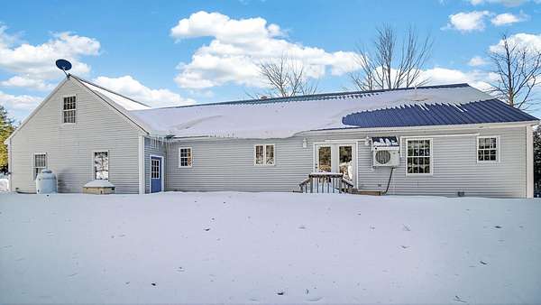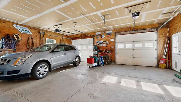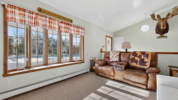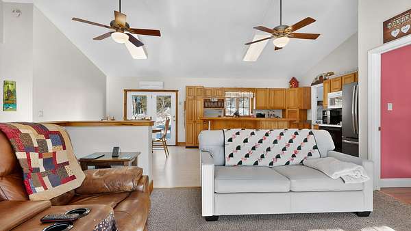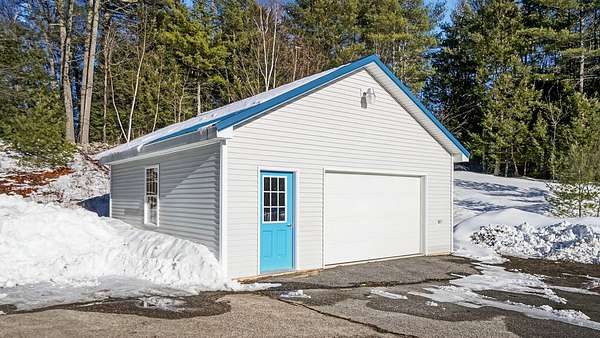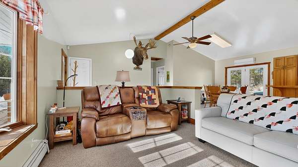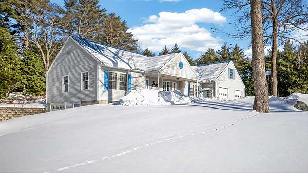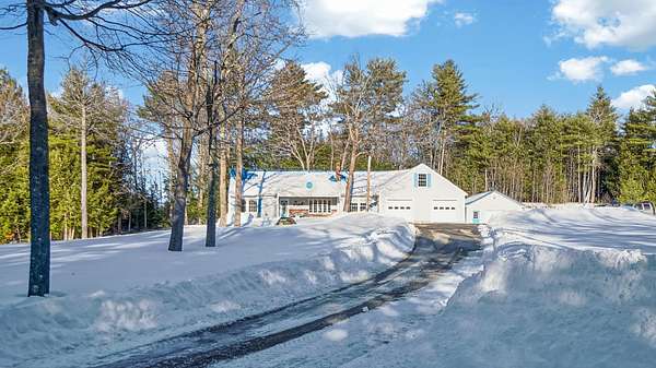 Experience the ease of one-floor living in this desirable ranch set on a peaceful 3-acre lot on a quiet private road. Offering 1414 square feet of sunlit living space, this home features a welcoming front living room with a soaring cathedral ceiling that flows seamlessly into the open kitchen with center island and adjoining dining area--perfect for both everyday living and entertaining. The primary suite includes a private ensuite bath with double sinks and an oversized walk-in shower, while a second bedroom enjoys direct access to a full bath. A practical mudroom entry featuring laundry and utility sink, completes the well-appointed floor plan. A heat pump ensures year-round comfort and efficiency. Car enthusiasts and hobbyists will be thrilled with the exceptional garage and storage options. The attached 30x40 heated three-car garage is equipped with radiant floor heat, creating the ideal workspace year-round. In addition, a detached 24x24 two-car garage and a basement with its own overhead door provide incredible flexibility for equipment or recreational toys such as boats, tractors and snowmobiles. Combining comfort, functionality, and an unbeatable setting, this property truly offers the perfect blend of lifestyle and practicality. Worry-free living with a built in propane generator.