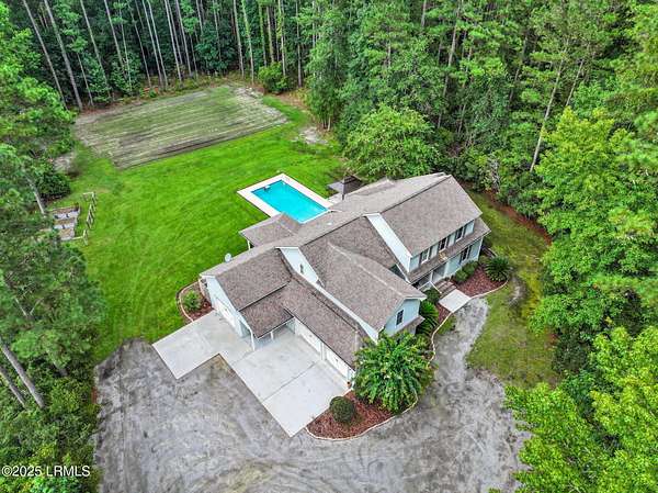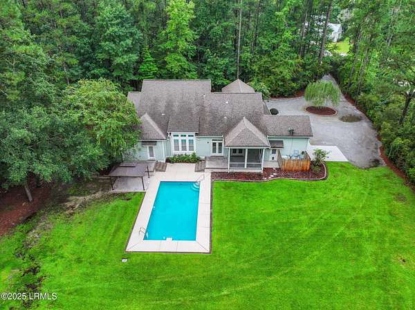 40 Rose Dhu Creek Plantation offers private luxury living on almost 2.5 acres in a Bluffton premier location! This exclusive estate combines space, privacy, and refined comfort with everyday practicality. The residence features 5 bedrooms, 3 full baths, and a versatile media/flex room, all served by a thoughtful, open floor plan. A 3-car garage provides abundant storage and vehicle space. Step outside to enjoy the saltwater pool with a fast lane swim system and the serene outdoor living environment, screened porch is perfect for entertaining or quiet family moments. Residents also enjoy access to a community pool and pavilion just minutes away, enhancing the sense of community while preserving your private retreat. With easy access to Old Town Bluffton, you are never far from boutique shops, dining, and cultural events, yet you will feel a world away at home. This home is ideal for refined entertaining, flexible living arrangements, and those who value privacy without sacrificing convenience.