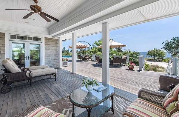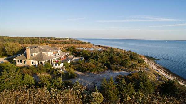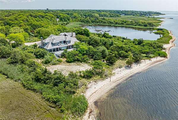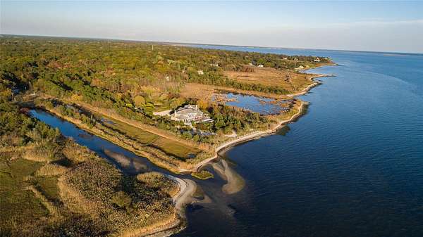 Welcome to Turtle Bay. Experience luxurious waterfront coastal living at Turtle Bay, an exceptional 7,900+ square foot custom-built residence, nestled on 9.25 acres of pristine land and surrounded by 70+/- acres of protected preserves. Located just 1.5 miles from charming Bellport Village and only 60 miles from Manhattan, this waterfront estate offers the perfect blend of privacy and convenience. This captivating residence showcases an elegant primary suite with panoramic views of the Great South Bay, a private library, butler pantry, a serene garden room, and a spacious three-car garage with epoxy floor topped by a finished guest suite--perfect as-is or easily transformed into a studio or gym. The home also boasts 360 feet of private beach, offering direct access to the water and breathtaking views. Entertain in style with a covered porch, an outdoor kitchen, and a spectacular infinity-edge pool and spa that seem to melt into the bay. The beautifully landscaped grounds include a tranquil koi pond with waterfall, walking paths, and unmatched natural beauty throughout. Thoughtfully designed for modern living, the home features two washing machines, two dryers, two Subzero refrigerators, and two Miele dishwashers - providing seamless convenience and efficiency for everyday life and entertaining. With an extensive list of upscale amenities and timeless architectural detail, this is a rare opportunity to own a true waterfront sanctuary.