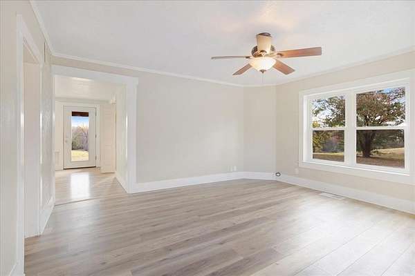 Escape the city and embrace the peace of country living in this beautifully updated 1,999 sq ft home, perfectly situated on 5 serene acres just outside the city limits. Surrounded by mature trees and open skies, this property offers the perfect blend of comfort, privacy, and natural beauty. There is plenty of opportunity to enjoy the outdoors with two private decks on one side of the home and a covered concrete patio on the other side. The covered patio overlooks the tranquil pond, which features a large deck and terraces, providing ample space for gatherings and activities, as well as enjoying sunrises and sunsets through the surrounding trees. The 2-stall horse barn is ready for your animals, hobbies, or extra storage, and the acreage provides endless possibilities for gardening, riding, or simply enjoying the great outdoors. Inside, you'll find thoughtful updates in the spacious open-concept kitchen, which is filled with abundant natural light from the expansive windows and offers plenty of cabinet and counter space for the chef in the family. The home features 4 bedrooms and 2.5 bathrooms, with one of the bedrooms having a private entrance to the outside and to the covered patio, which would make a nice flex room, additional living room, or home office. This corner property is fully fenced with the main entrance gate on Sheryl Lane, plus two other gated entries on Fannin Street connecting a circle drive near the side of the home. With the convenience of nearby city amenities just minutes away and no city taxes, this property delivers the best of both worlds--modern comfort and peaceful country living. If you've been searching for a place to slow down, stretch out, and savor the quiet--welcome home.