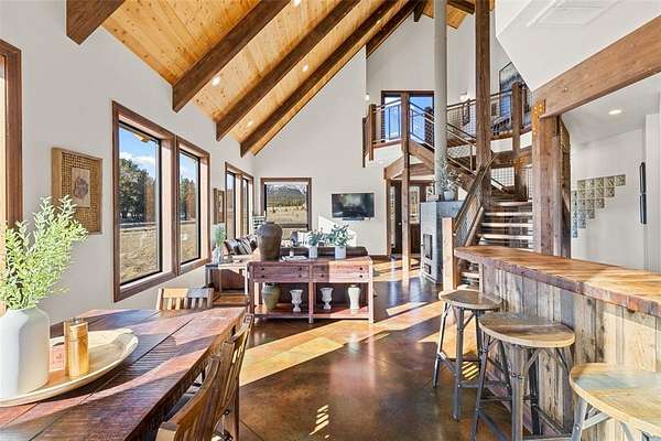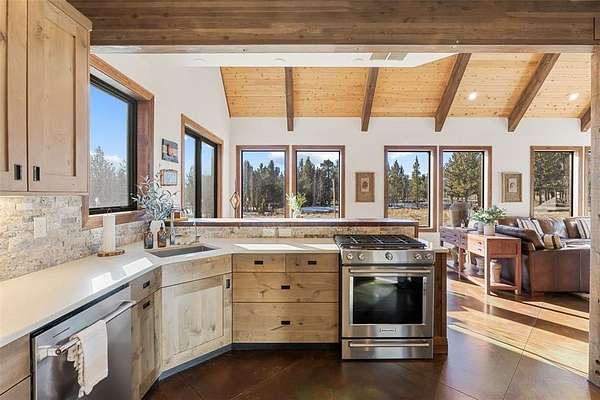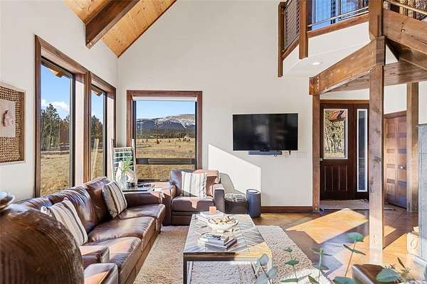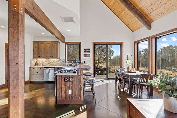 Tucked within the Foxtail Pines neighborhood in Fairplay, this secluded 3-bedroom, 2.5-bath mountain retreat spans 2,063 square feet across 3 gated acres of pristine alpine landscape, surrounded by towering pines, aspens, and expansive mountain views. Vaulted tongue-and-groove ceilings with exposed beams, walls of natural light, and a soapstone fireplace define the open living space, complemented by polished concrete floors and quartz finishes. The luxury kitchen, serene primary suite with steam shower, radiant heat, and smart-home technology create a refined yet effortless lifestyle. Offered fully furnished for a seamless, turn-key mountain escape.