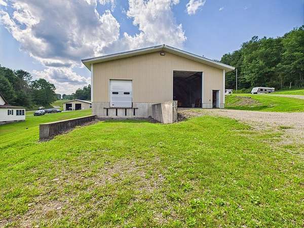 Est $6,074/moHere is a one of a kind commercial /residential property on 4.5 acres, just out of Coudersport. Beautiful country setting to enjoy living and all set to run a business. There are 4 main buildings, 1. shop 75x50, 2. 71x52 3. warehouse 65x50 4. retail space with office 63x26. There are also some extra storage sheds. There is 3 phase electric in 2 of them, bathrooms in all but 1 building, overhead doors and a loading dock. There is a backup generator that runs all of it in a power outage. There is also a 2 bedroom 1&1/2 bath home with large living room, dining room with built-in hutch, small office area.