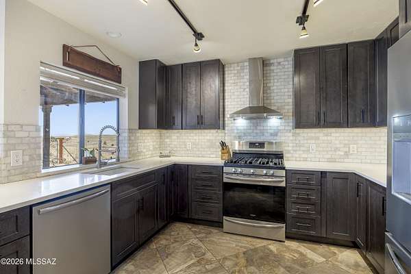 Beautifully updated home on expansive acreage in the heart of Sonoita's scenic wine country. This property offers the perfect blend of privacy, open space, and modern upgrades. Inside, you'll find a thoughtfully renovated kitchen with updated finishes, complemented by new flooring and an open-concept layout that enhances natural light and flow. Situated on over 3 acres, the property provides endless opportunities for outdoor living, horses, or simply enjoying the peaceful desert landscape, mountain views and beautiful sunrise & sunsets. With plenty of room to expand and no HOA, this is an ideal retreat for those seeking space and serenity while still being within a reasonable drive to Tucson.
