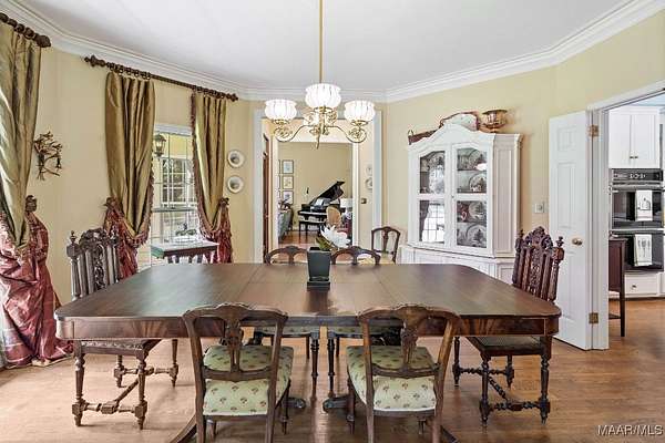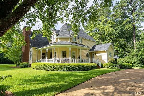 Welcome to one of the most iconic homes in town, this exquisite custom-built Victorian estate sits on over five beautifully maintained acres, graced with mature trees, sweeping lawns, and timeless elegance. Proudly featured in two national magazines, this one-of-a-kind property combines architectural artistry with enduring quality. From the hand-carved 1750s French mantel that anchors the living space to the custom cabinetry and millwork throughout, every inch of this one-owner home showcases craftsmanship rarely seen today. With 4 spacious bedrooms and 3.5 well-appointed baths, the home balances grandeur and warmth, offering a magazine-worthy setting for both intimate family moments and unforgettable gatherings. Designed for entertaining, this property has hosted weddings, showers, and garden teas, all set against the backdrop of lush landscaping and a well-driven irrigation system that keeps the grounds picture-perfect. A large workshop or barn adds versatility for hobbyists or additional event space. Inside, the home flows effortlessly, elegant yet livable, with a timeless aesthetic that never goes out of style. The kitchen and baths remain largely original, showcasing the enduring quality of their materials and design. Select appliances and countertops reflect the home's era, adding character while remaining fully functional. These thoughtfully preserved spaces blend seamlessly with the home's overall appeal, ready for modern updates, or perfectly lovely just as they are. The roof and HVAC systems were all replaced within the last five years, and the water heater was updated in 2018, offering peace of mind and modern reliability. Whether you're sipping sweet tea on the wraparound porch or watching fireflies dance at dusk, you'll feel worlds away without ever leaving town. This is more than a home, it's a legacy property that's been the setting for cherished memories & is ready for its next chapter. If you've been waiting for something truly special, this is it.