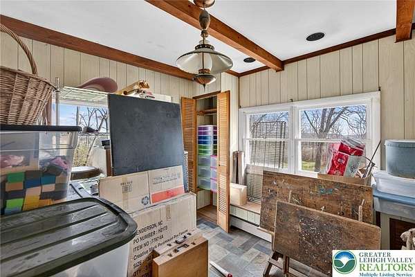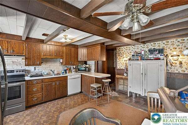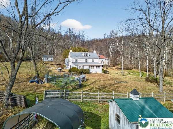 Set on 17.3 acres under Act 319, this 4 bedroom 2 bath stone farmhouse dates back to the 1850s and offers a rare combination of history and privacy. Only four homes sit along Wheeler Ln, giving this property a peaceful setting with long views, open land and a pond the owner states is the only clean drinking water in the valley. The home needs some TLC and updates throughout.The first floor features LVP flooring, two living rooms, wooden beam ceilings, a kitchen with stainless steel appliances and a full bathroom with a pocket door. A bright bedroom is also on this level. The family room provides access to the rear deck. The second floor offers three bedrooms and a full bathroom. Two bedrooms are part of the original farmhouse and include heart of pine flooring. Hardwood flooring is under all carpeting on this level. The third floor holds the fourth bedroom with additional space. An unfinished basement offers more storage below.Outside, the acreage provides room for a variety of uses. An oversized one car garage, a workshop, a two sided barn and an outdoor wood stove create flexible options for projects, equipment or hobbies. The open land lends itself to farming, recreational use or a business that needs space to grow. This property is full of possibility for someone who wants to bring an 1850 farmhouse back to life on a beautiful stretch of land.Please do not enter the driveway without an appointment.