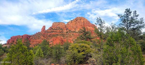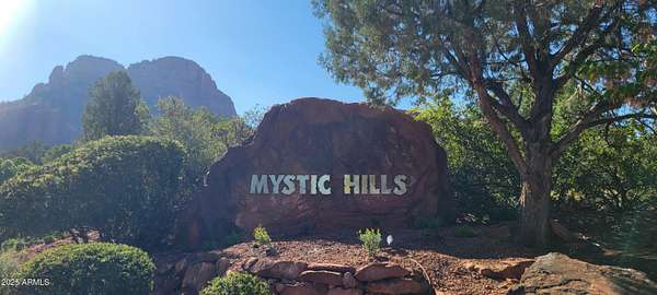 This flag-shaped lot offers privacy and seclusion. Majestic trees and an amazing view of Elephant Rock make it special. Live in harmony with nature as you watch wildlife frolic by the meandering wash. Living in Mystic Hills means more than just a beautiful home; it's about being part of a welcoming, active community. Neighbors gather for barbecues and card games, while the clubhouse and courts buzz with friendly matches of tennis, pickleball, and bocce ball. With its blend of natural beauty and vibrant social life, Mystic Hills is the ideal place to build not just a house, but a home. Approved plans for a 4-bedroom home are available, saving you time and bringing you one step closer to enjoying your Sedona lifestyle. We invite you to walk down the path to the bldg site to see the beauty!