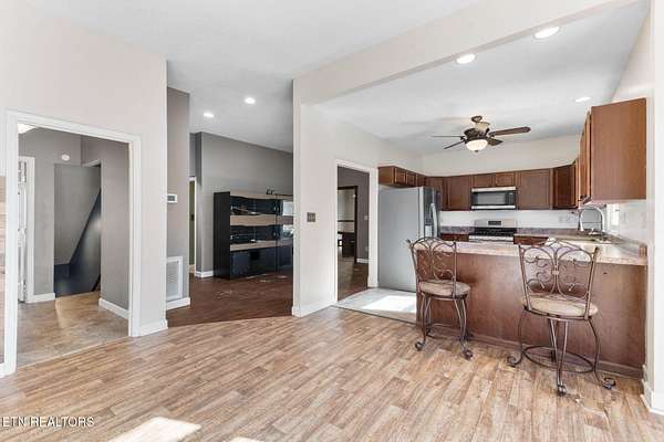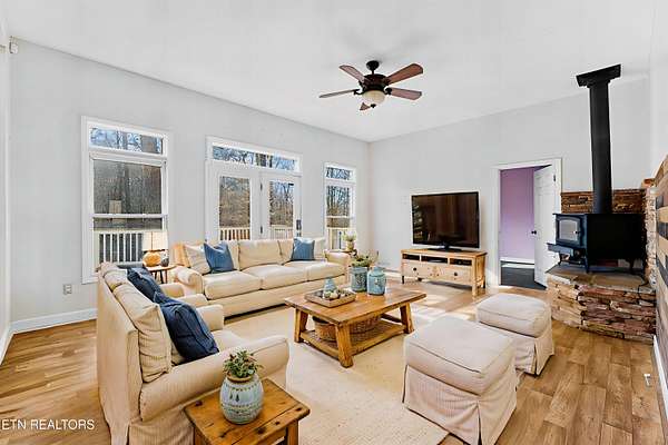 Welcome to this beautifully maintained and thoughtfully updated farm house tucked away in peaceful Washburn, offering the perfect blend of privacy, space, and convenience just minutes from Norris Lake and a short drive to the Smoky Mountains. With nearly 5,000 square feet of living space, this spacious residence features 6 bedrooms and 3.5 bathrooms, including two primary suites, and sits on just under four unrestricted acres surrounded by woods, wildlife, and serene natural views. Designed with flexibility in mind, the finished walkout basement includes its own private entrance, dedicated parking area, and a second primary suite complete with a custom walk-in closet and barn doors - ideal for multigenerational living, guests, or potential rental income. Large, open living areas throughout the home provide plenty of room for entertaining or simply spreading out comfortably. The land offers incredible homestead potential with a mix of wooded privacy and cleared, flat spaces perfect for adding a barn, garage, or workshop, along with room for horses, goats, or other animals. Expansive front and back porches create inviting outdoor living spaces where you can relax and enjoy frequent visits from deer, songbirds, hummingbirds, and other wildlife. Despite the peaceful rural setting, everyday conveniences are close by with high-speed internet and cable already installed, marinas and lake access just 5-10 minutes away, groceries and restaurants within 10-15 minutes, and Knoxville only 30-45 minutes away without highway driving. A long private driveway ensures total seclusion with no neighbors in sight and plenty of space to park boats, RVs, or recreational equipment. Numerous recent updates add comfort and value, including fresh paint, new baseboards and closet doors, designer ceiling fans, new LVP flooring in four bedrooms, two new HVAC units (2024), a new refrigerator (2024), a 75-gallon water heater, whole-house water filtration with UV system, a new well bladder, and the addition of the second primary suite and expanded storage. With its size, setting, modern updates, and unrestricted acreage, this property offers rare value and endless possibilities in East Tennessee.