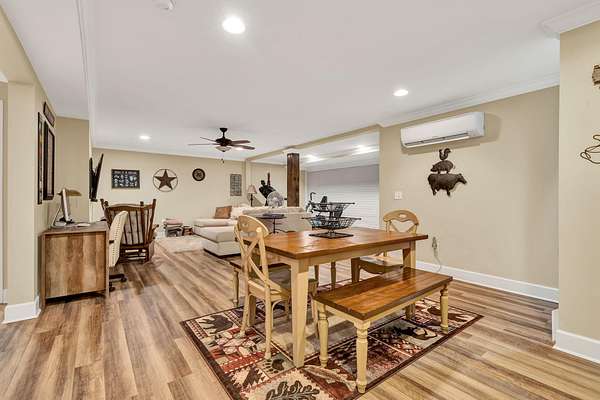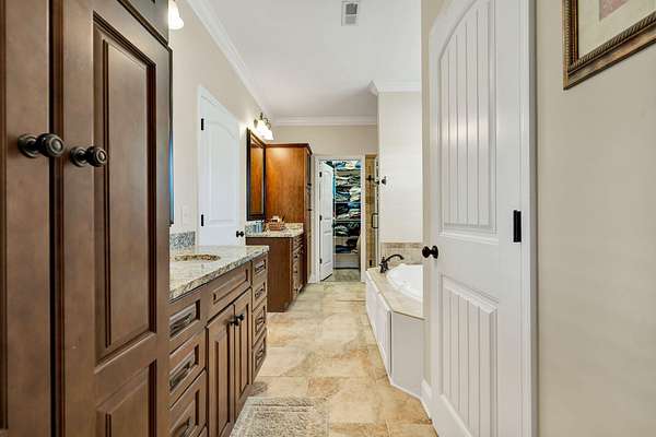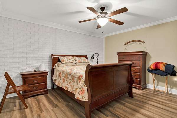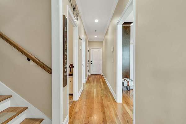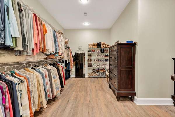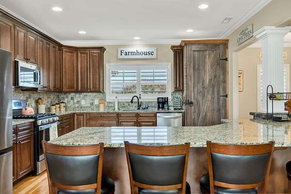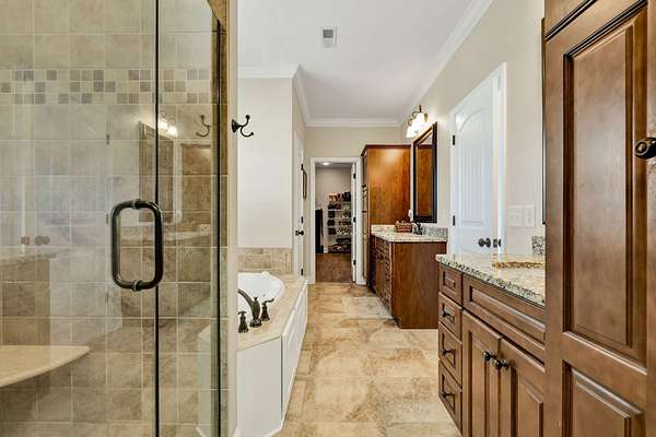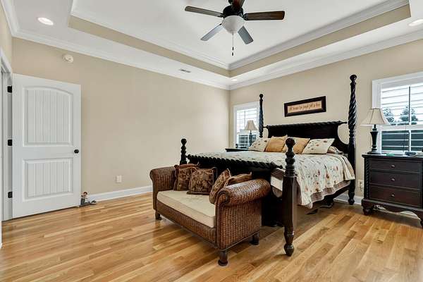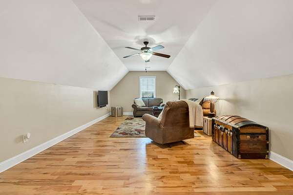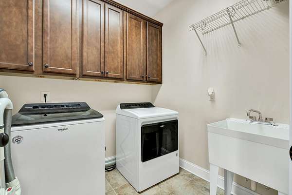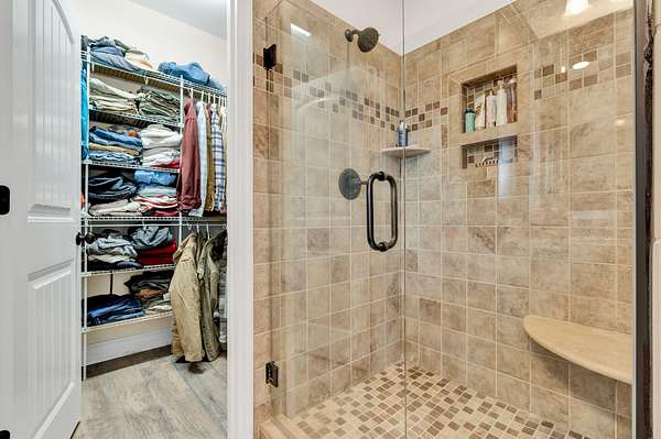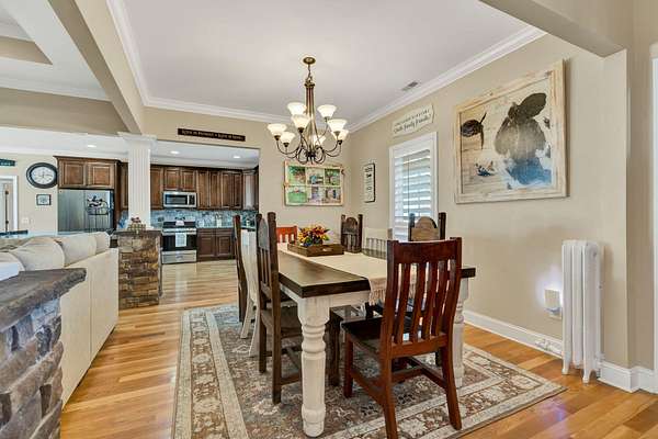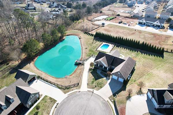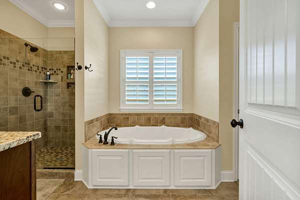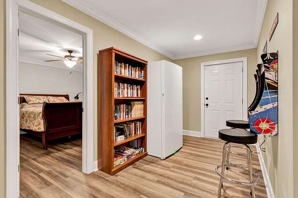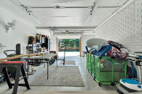 This exceptional custom residence offers approximately 4,200 square feet of thoughtfully designed living space, situated on 1.84 private acres and showcasing an impressive combination of refined interior craftsmanship, functional design, and outstanding outdoor amenities. With four bedrooms and three and a half bathrooms, this home provides both space and versatility while delivering a private retreat in a highly desirable setting. The main level features an open floor plan designed for comfortable everyday living and seamless entertaining. Crown molding throughout and tray ceilings in select spaces add architectural depth and elegance. Custom plantation shutters accent every window, allowing natural light while maintaining privacy and timeless style. The kitchen is a standout with all new appliances, including a GE microwave, Samsung refrigerator, Whirlpool dishwasher, GE gas cooktop with electric oven, and a new garbage disposal. A custom built barn door adds character and functionality to the pantry, while generous cabinetry and counter space make this kitchen ideal for both daily use and hosting guests. The primary suite is conveniently located on the main level and serves as a true retreat. It features a large walk-in closet and a spa inspired en suite bathroom with dual vanities, a soaking tub, and a separate tiled walk-in shower. Additional bedrooms are well sized and thoughtfully positioned to accommodate family members or guests. The finished lower level greatly expands the living space and offers exceptional flexibility. This level includes a spacious entertainment area, office, craft room, heated and cooled workshop, and a third garage. Video games mounted in the basement entertainment area convey with the home, along with a desk located in the lower level office. In the second basement bedroom, the dresser and nightstand convey. The grey cabinetry in the basement coffee area also remains with the property, adding convenience and charm.